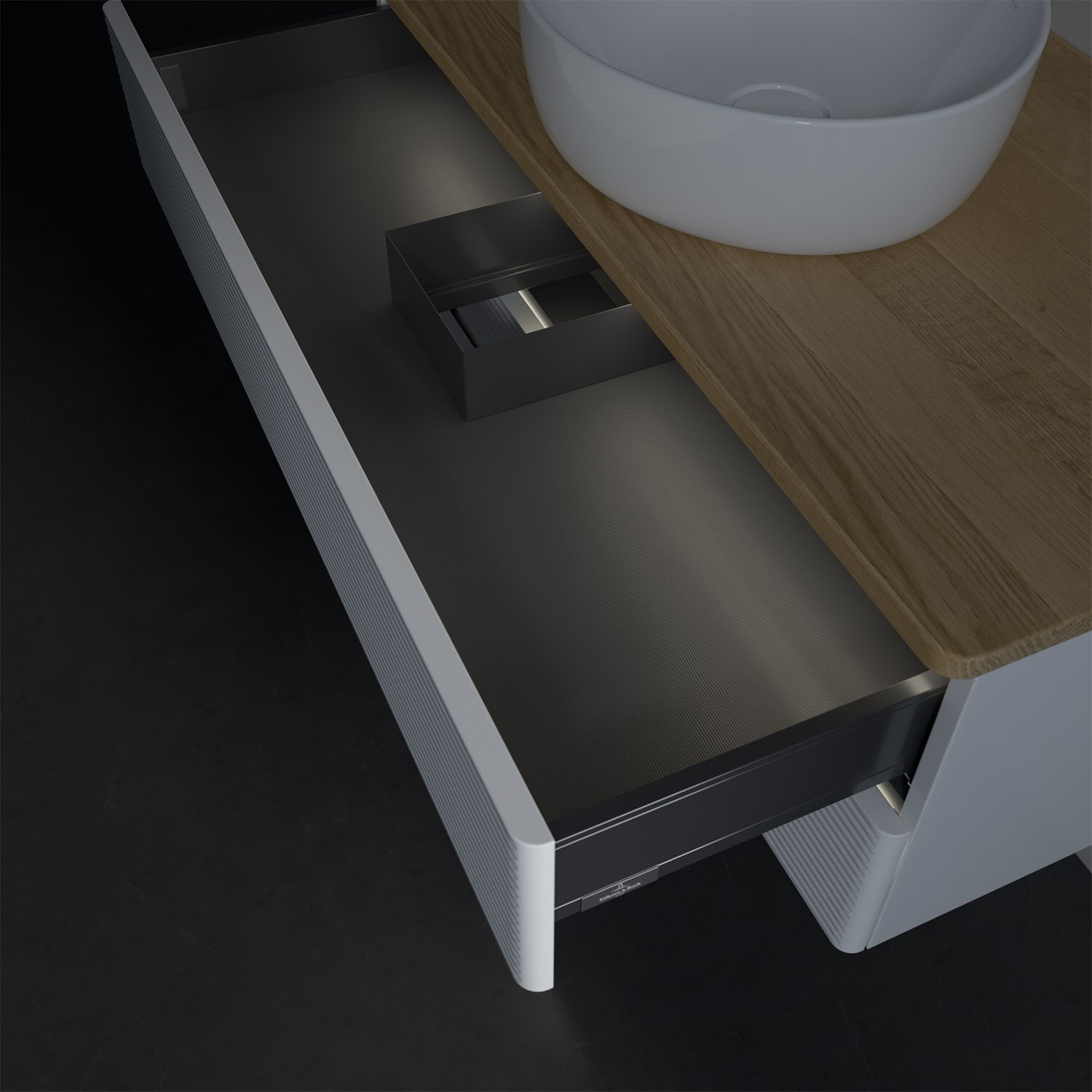 Villeroy & Boch Antao Waschbeckenunterschrank, 100 x 36 cm, 2 Auszüge mit LED-Licht, Front mit Struktur, ohne Hahnloch