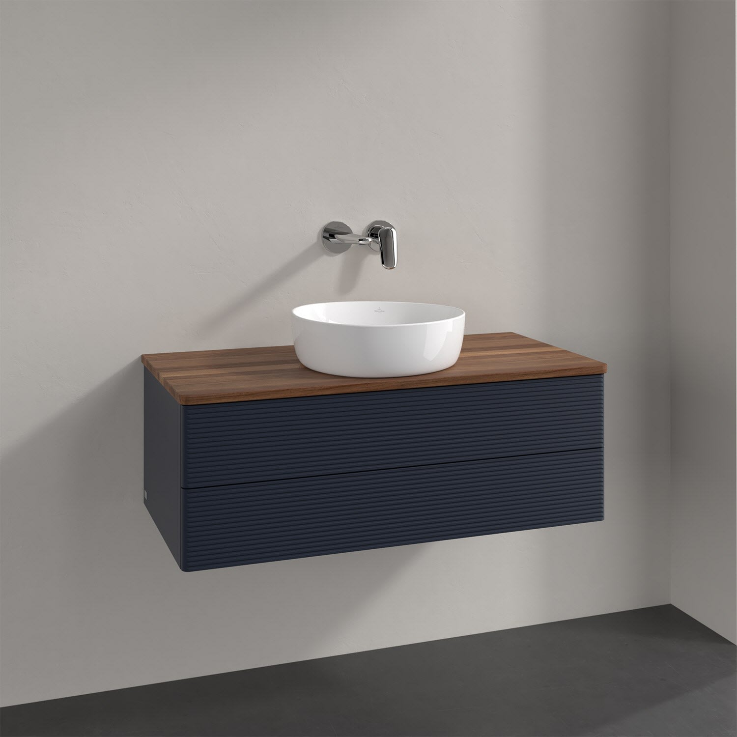 Villeroy & Boch Antao Waschbeckenunterschrank, 100 x 36 cm, 2 Auszüge mit LED-Licht, Front mit Struktur, ohne Hahnloch