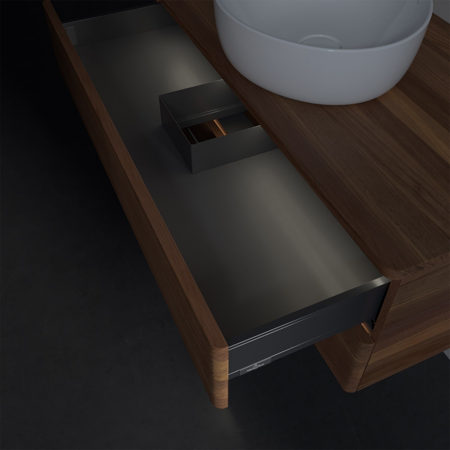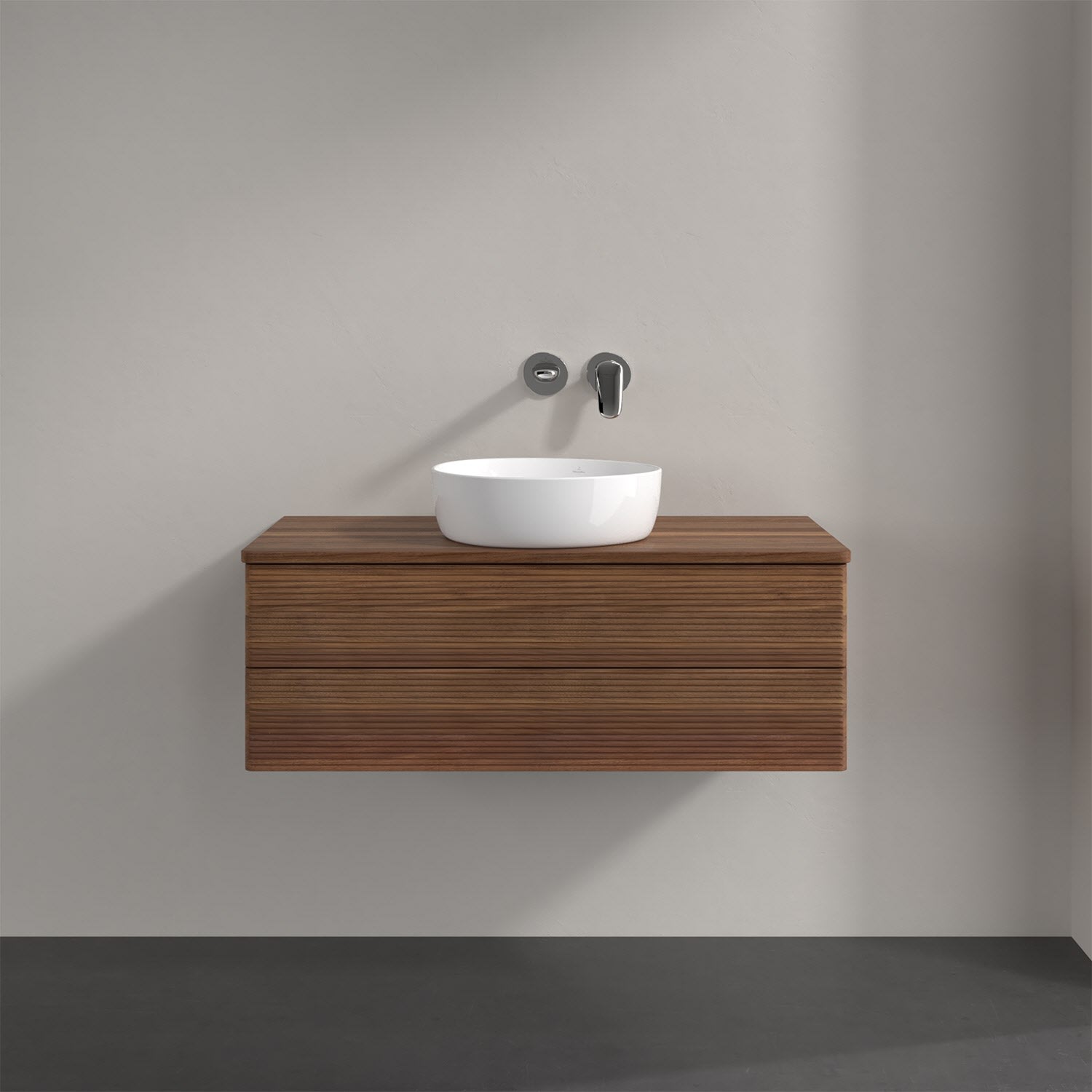 Villeroy & Boch Antao Waschbeckenunterschrank, 100 x 36 cm, 2 Auszüge mit LED-Licht, Front mit Struktur, ohne Hahnloch