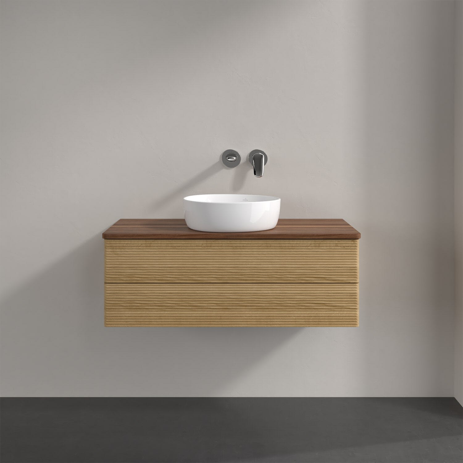 Villeroy & Boch Antao Waschbeckenunterschrank, 100 x 36 cm, 2 Auszüge mit LED-Licht, Front mit Struktur, ohne Hahnloch