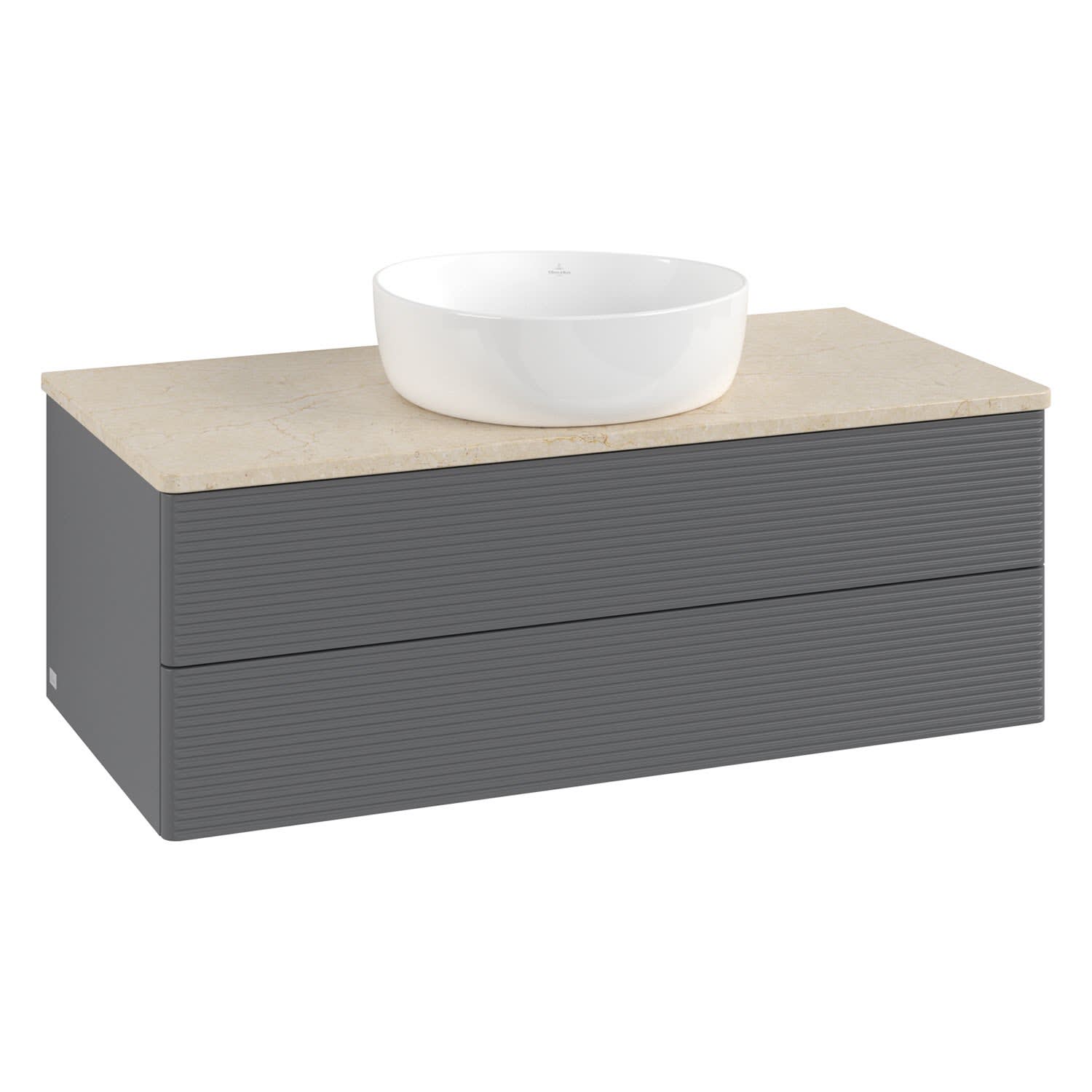 Villeroy & Boch Antao Waschbeckenunterschrank, 100 x 36 cm, 2 Auszüge mit LED-Licht, Front mit Struktur, ohne Hahnloch