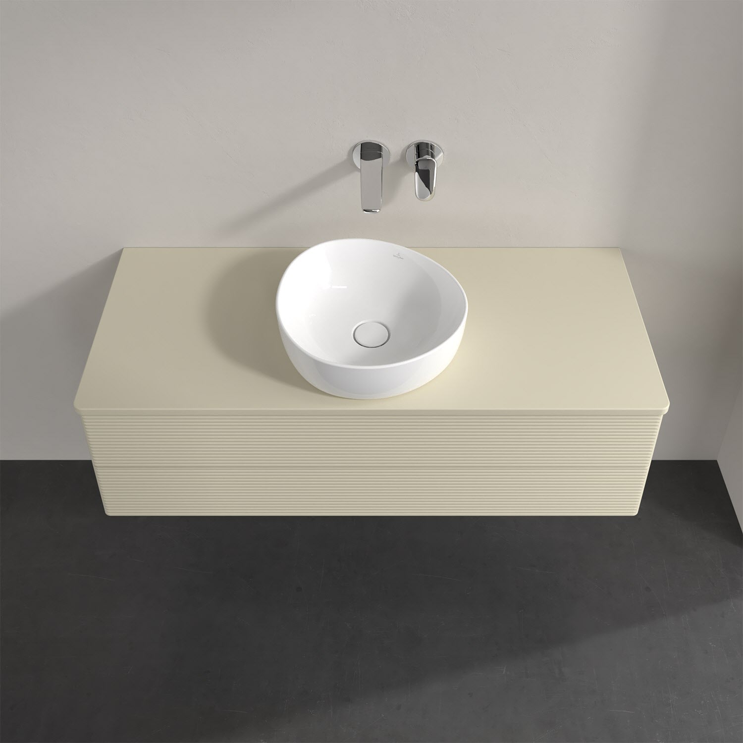 Für diesen Waschbeckenunterschrank stehen Ihnen Aufsatzwaschtische aus verschiedenen Serien zur Verfügung (siehe "Passliste" unter Downloads). Ein ausgewähltes Beispiel finden Sie im Zubehör. Den Waschtisch bitte separat mitbestellen.