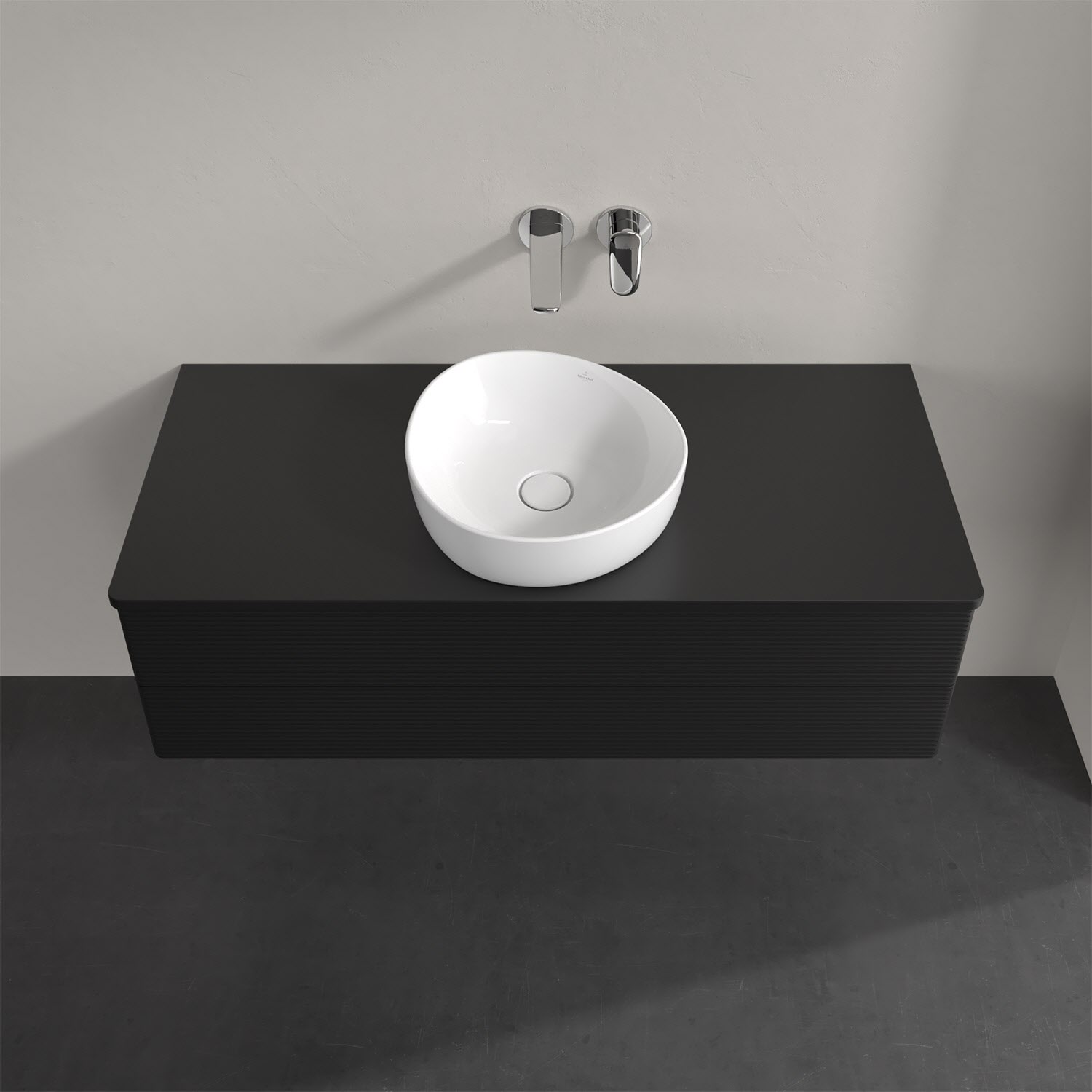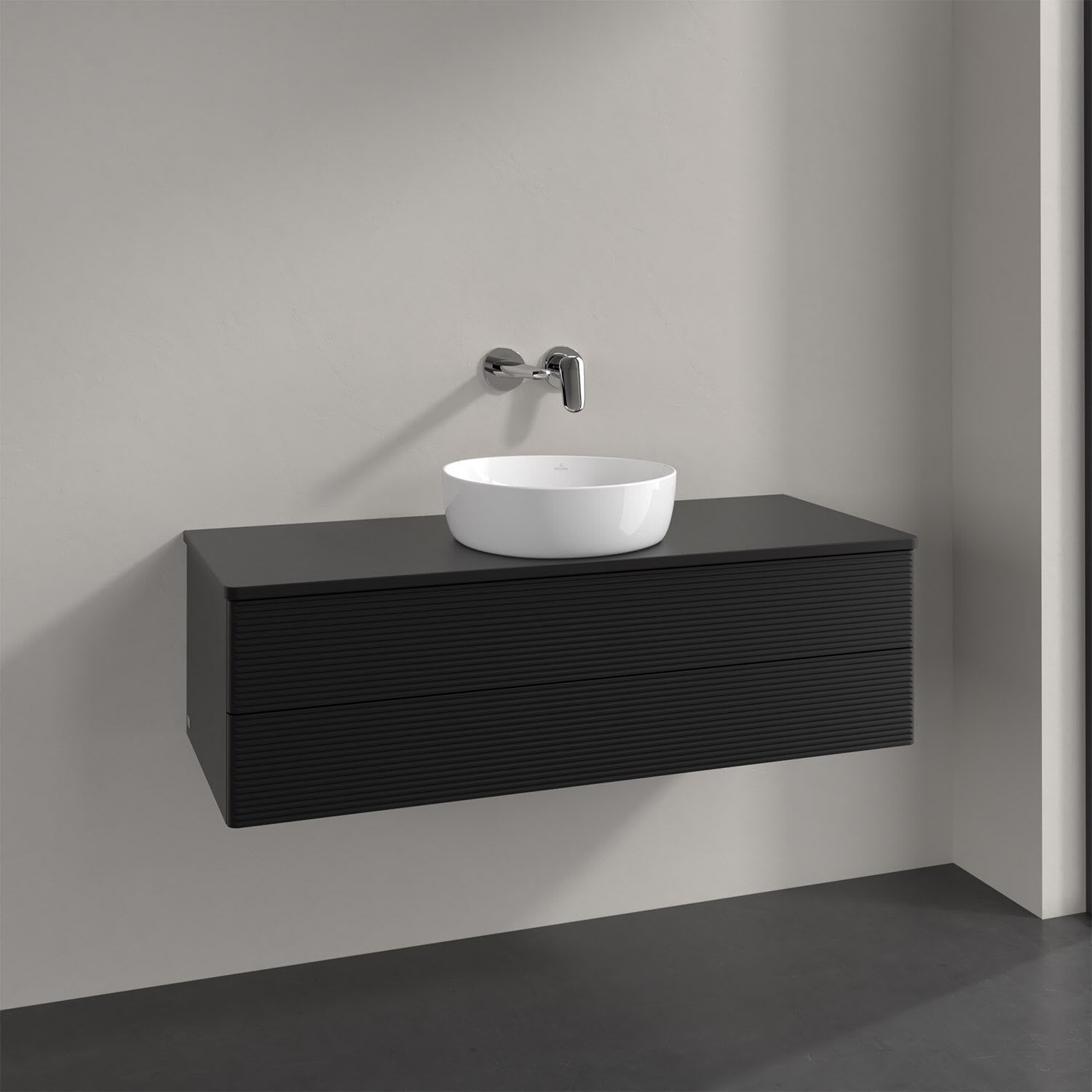 Villeroy & Boch Antao Waschbeckenunterschrank, 120 x 36 cm, 2 Auszüge mit LED-Licht, Front mit Struktur, ohne Hahnloch, für Waschtisch mittig