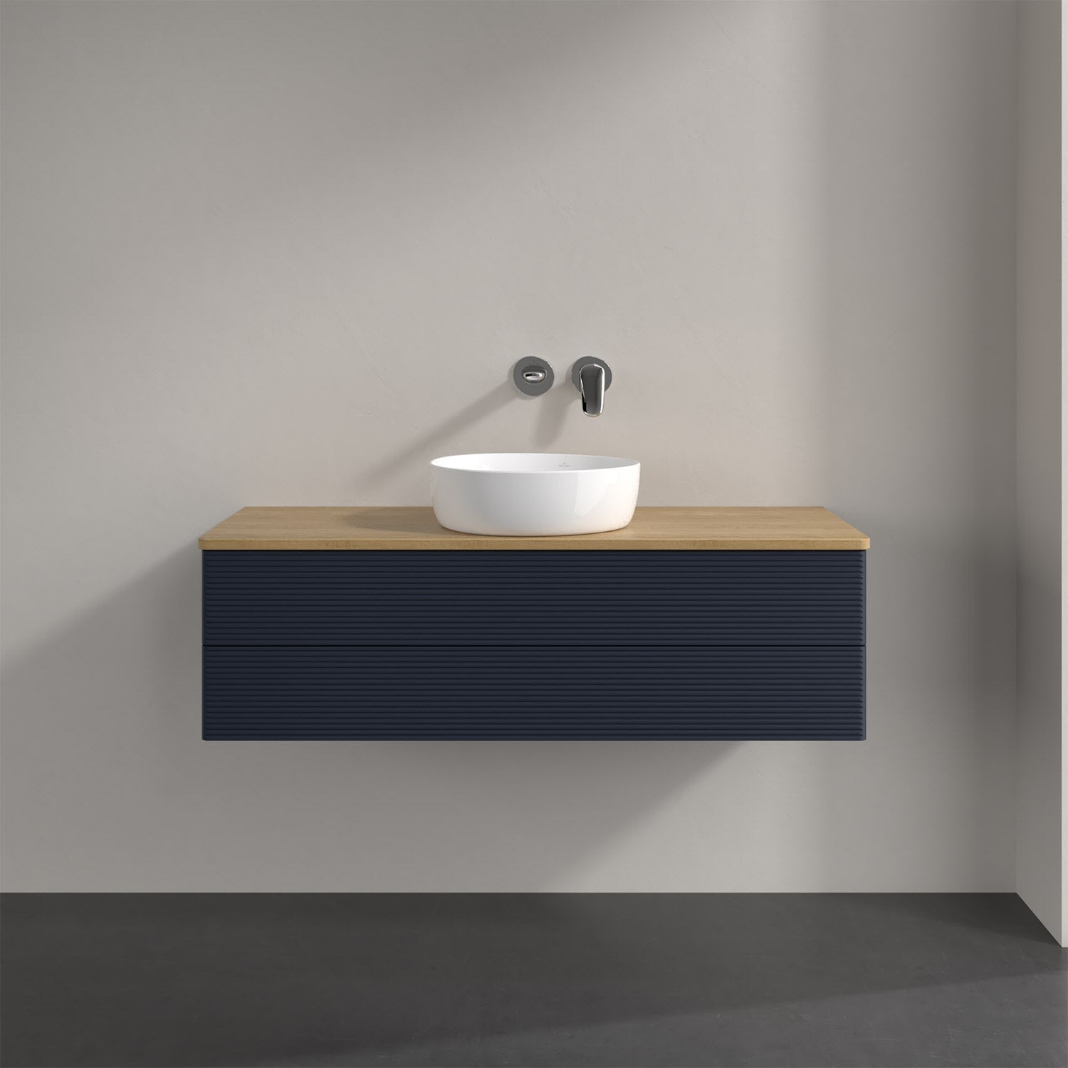 Villeroy & Boch Antao Waschbeckenunterschrank, 120 x 36 cm, 2 Auszüge mit LED-Licht, Front mit Struktur, ohne Hahnloch, für Waschtisch mittig