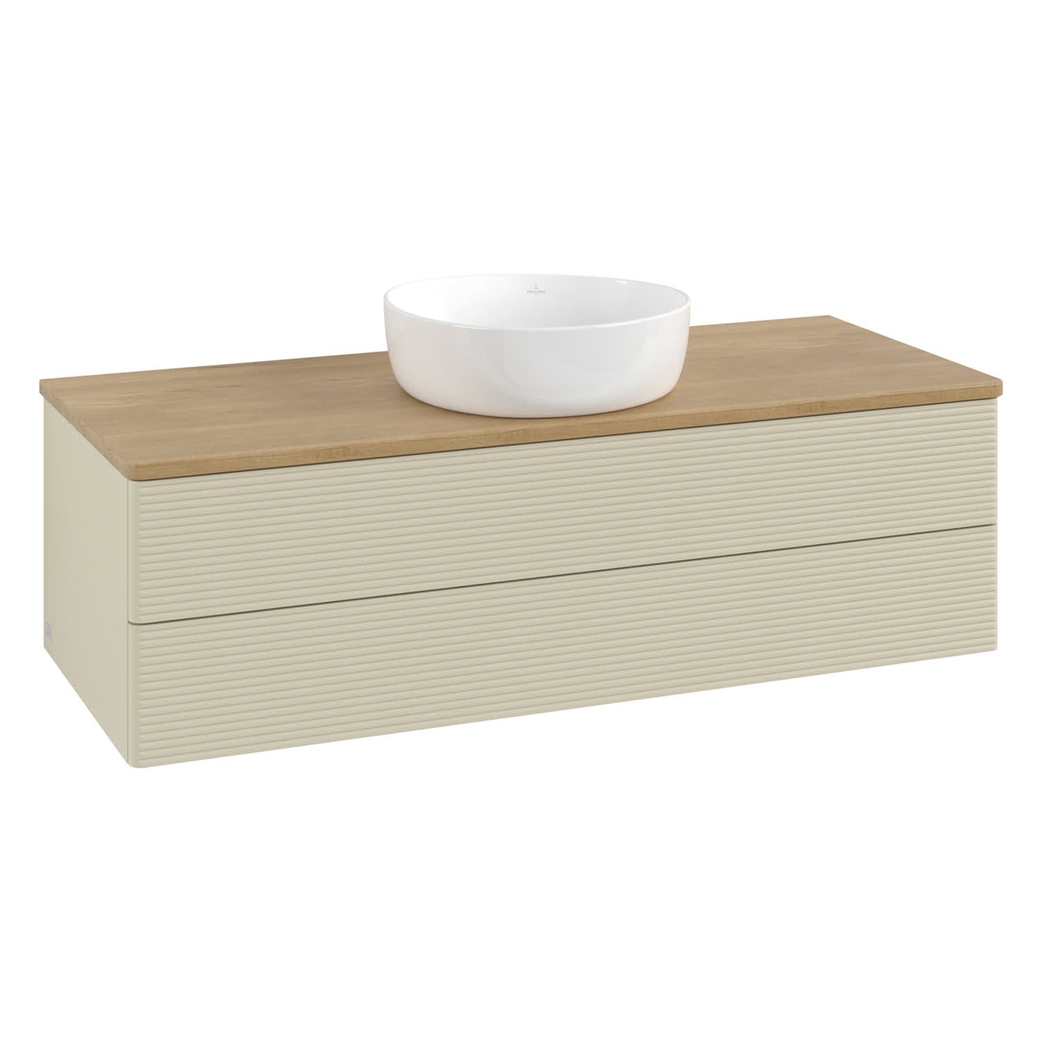 Villeroy & Boch Antao Waschbeckenunterschrank, 120 x 36 cm, 2 Auszüge mit LED-Licht, Front mit Struktur, ohne Hahnloch, für Waschtisch mittig