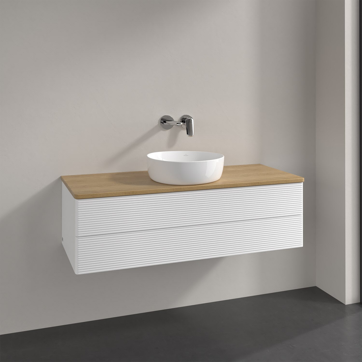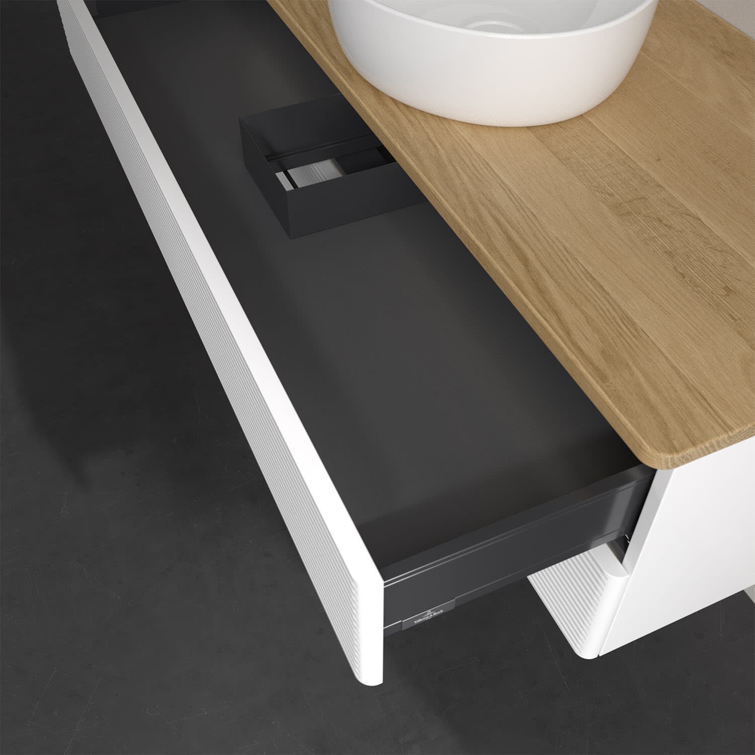 Villeroy & Boch Antao Waschbeckenunterschrank, 120 x 36 cm, 2 Auszüge mit LED-Licht, Front mit Struktur, ohne Hahnloch, für Waschtisch mittig