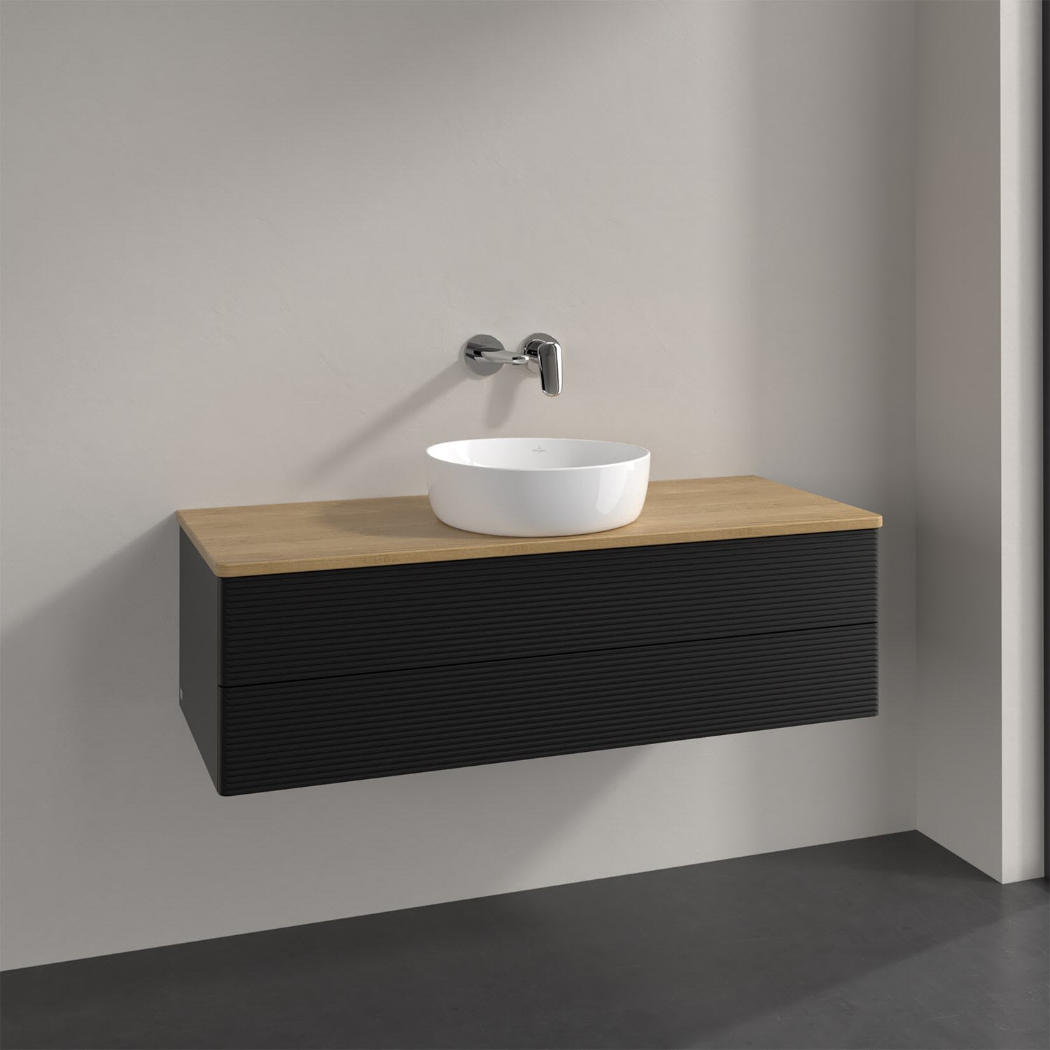 Villeroy & Boch Antao Waschbeckenunterschrank, 120 x 36 cm, 2 Auszüge mit LED-Licht, Front mit Struktur, ohne Hahnloch, für Waschtisch mittig