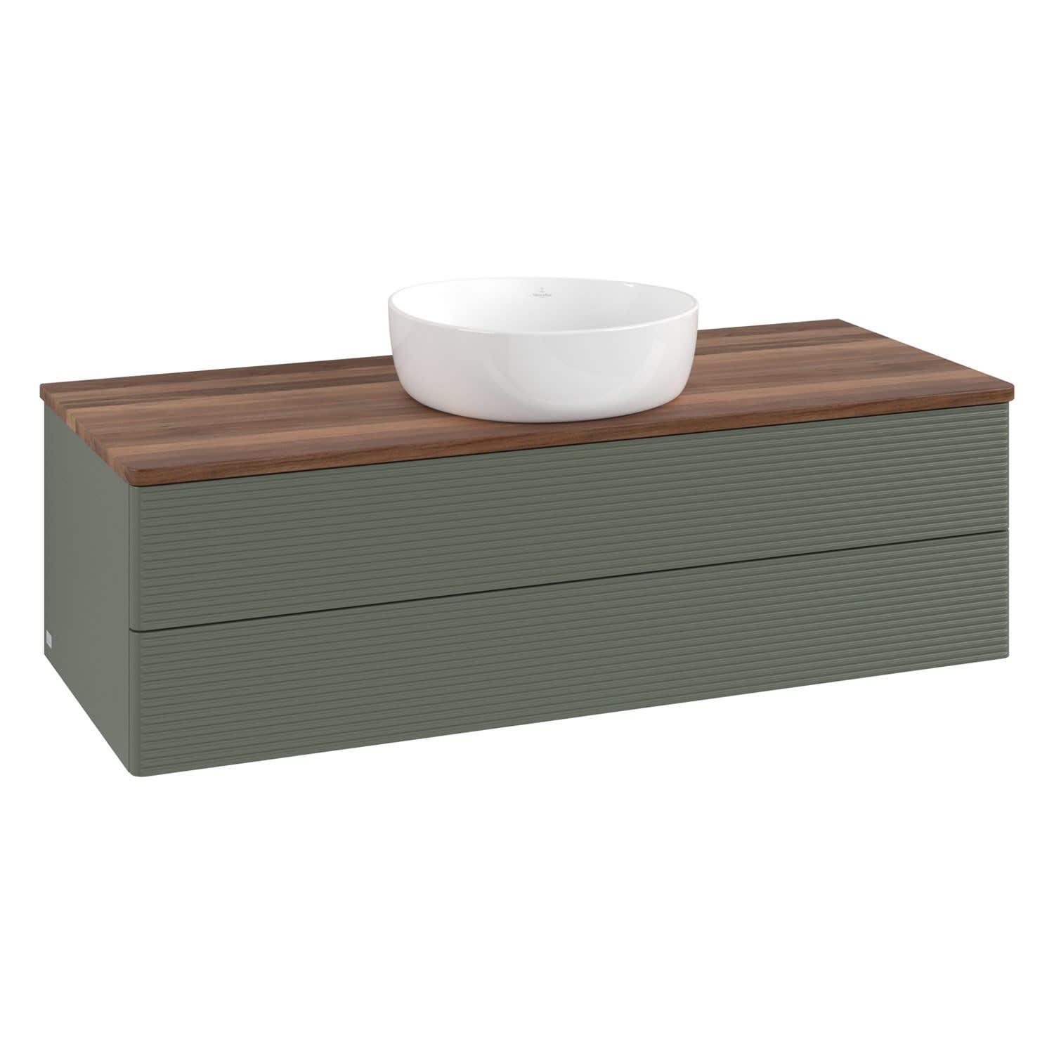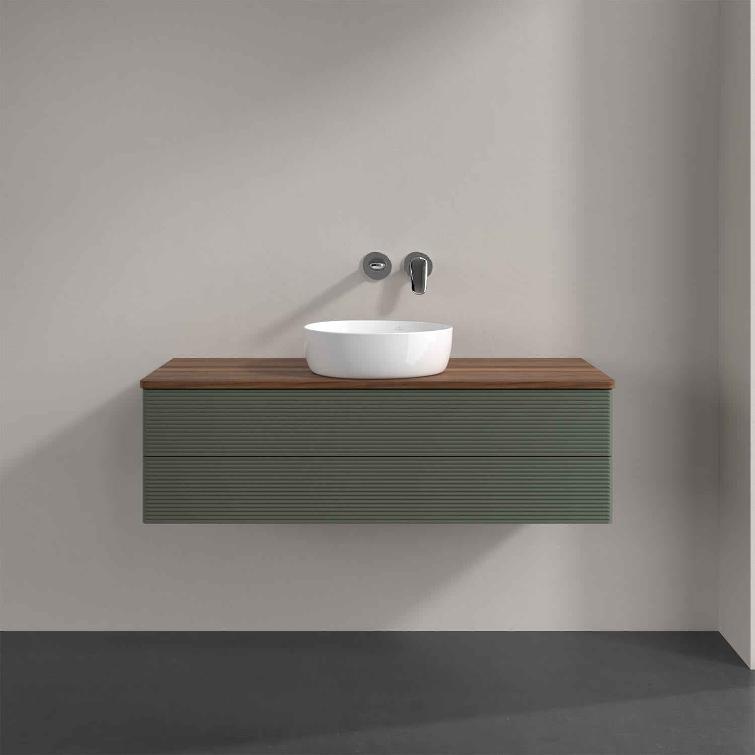 Villeroy & Boch Antao Waschbeckenunterschrank, 120 x 36 cm, 2 Auszüge mit LED-Licht, Front mit Struktur, ohne Hahnloch, für Waschtisch mittig