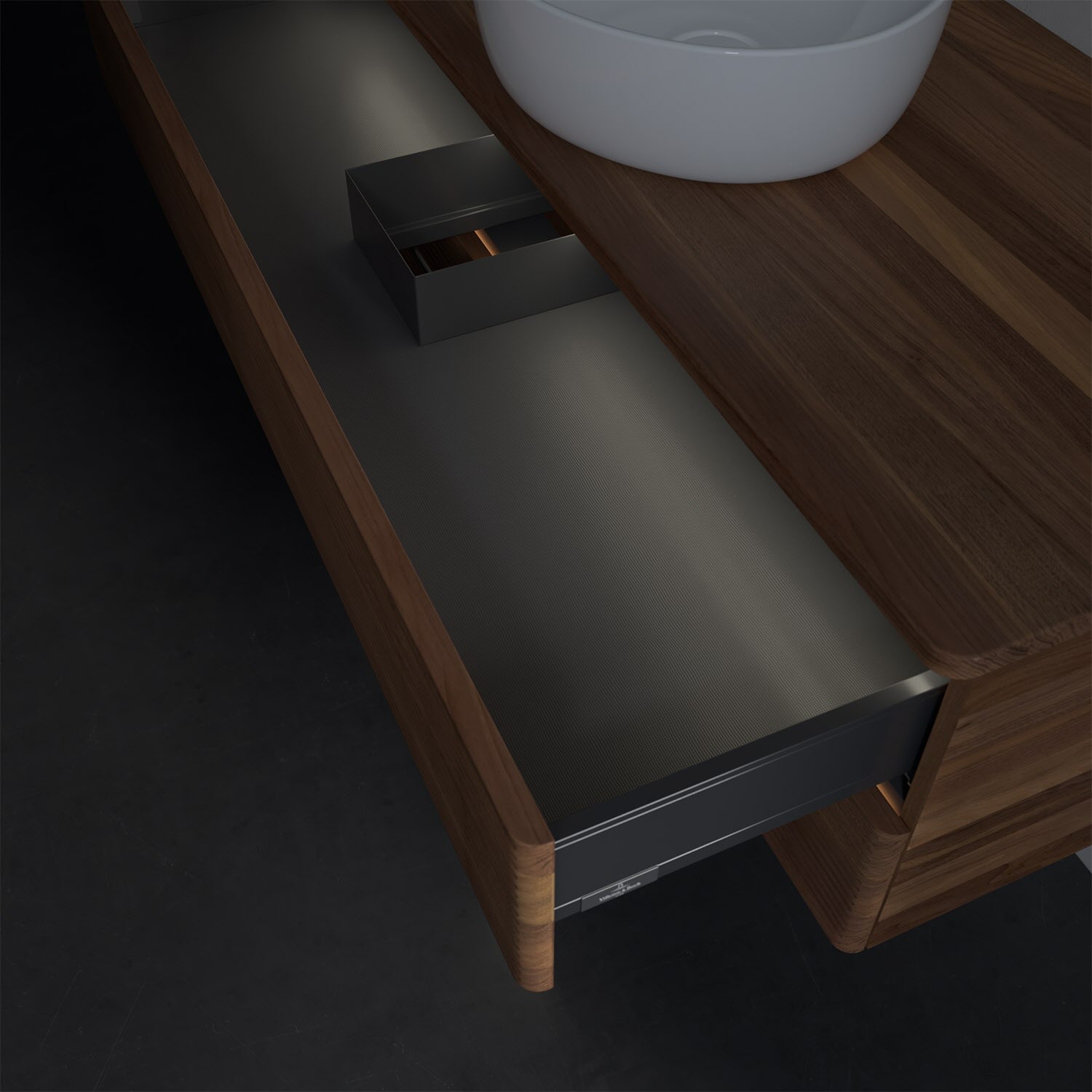 Villeroy & Boch Antao Waschbeckenunterschrank, 120 x 36 cm, 2 Auszüge mit LED-Licht, Front mit Struktur, ohne Hahnloch, für Waschtisch mittig