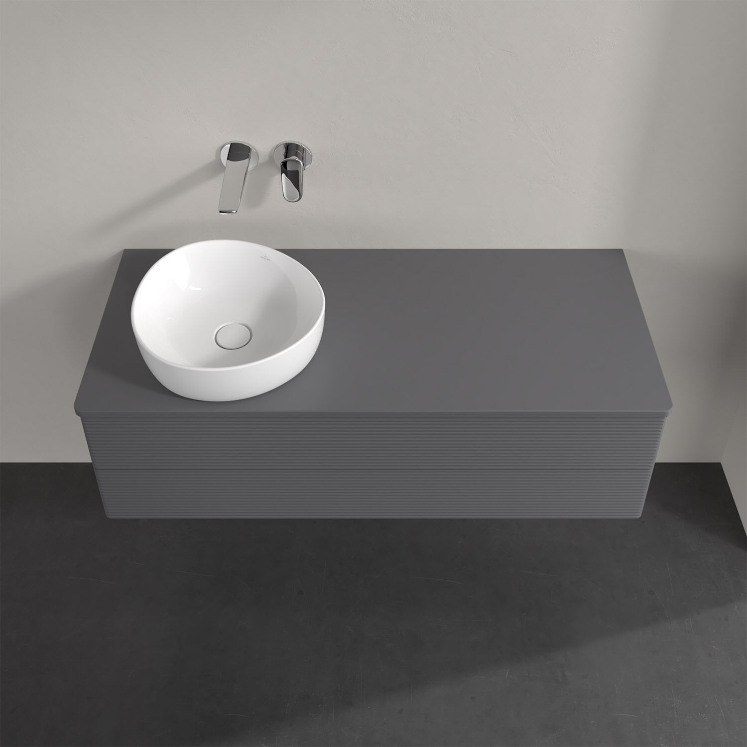 Für diesen Waschbeckenunterschrank stehen Ihnen Aufsatzwaschtische aus verschiedenen Serien zur Verfügung (siehe "Passliste" unter Downloads). Ein ausgewähltes Beispiel finden Sie im Zubehör. Den Waschtisch bitte separat mitbestellen.