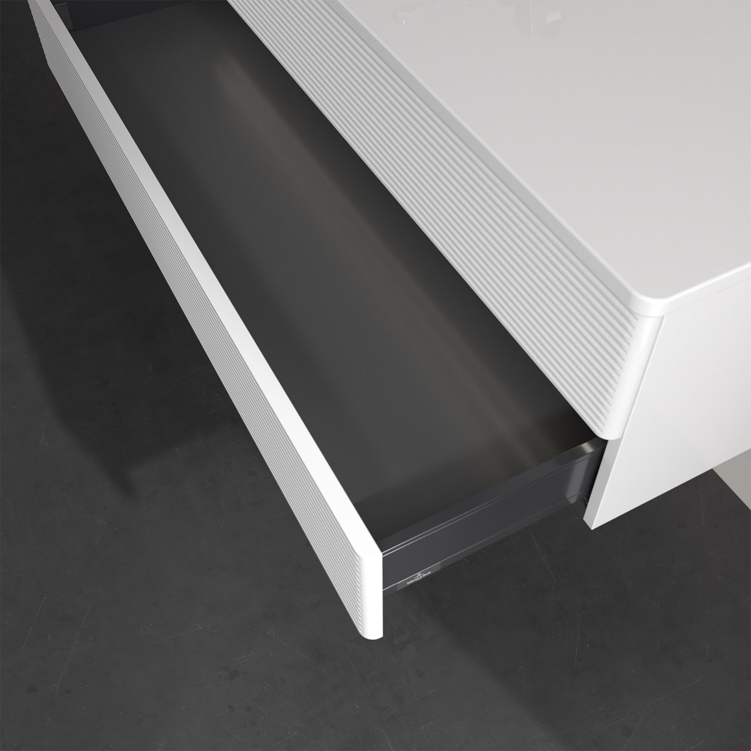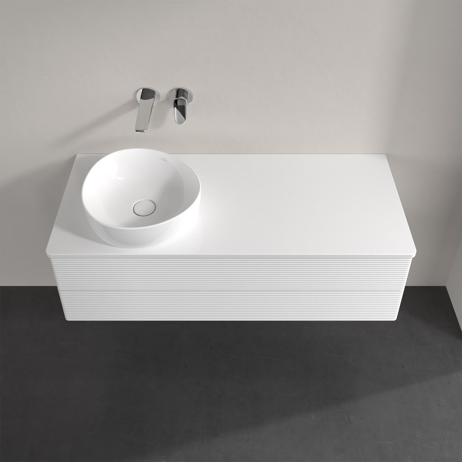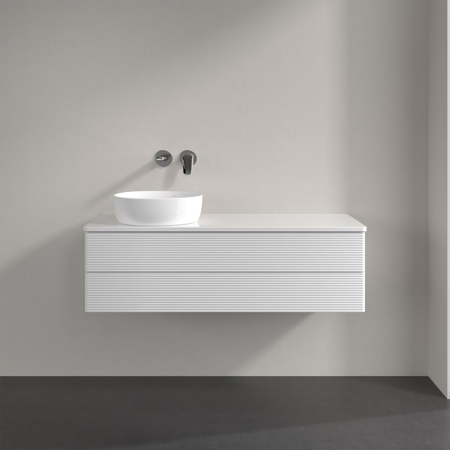 Villeroy & Boch Antao Waschbeckenunterschrank, 120 x 36 cm, 2 Auszüge mit LED-Licht, Front mit Struktur, ohne Hahnloch, für Waschtisch links
