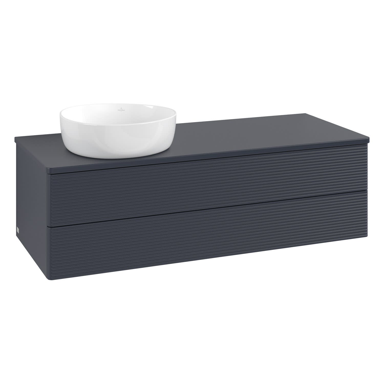 Villeroy & Boch Antao Waschbeckenunterschrank, 120 x 36 cm, 2 Auszüge mit LED-Licht, Front mit Struktur, ohne Hahnloch, für Waschtisch links