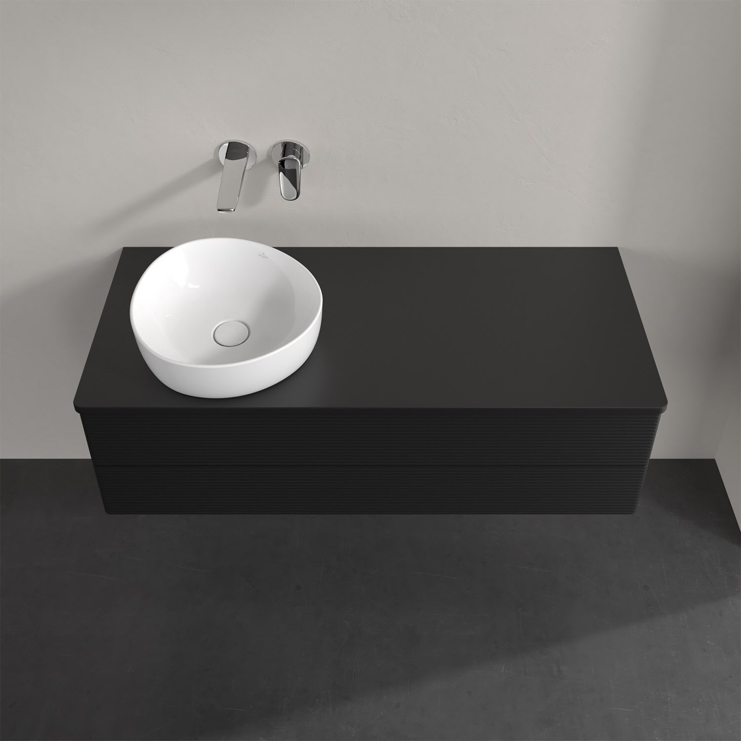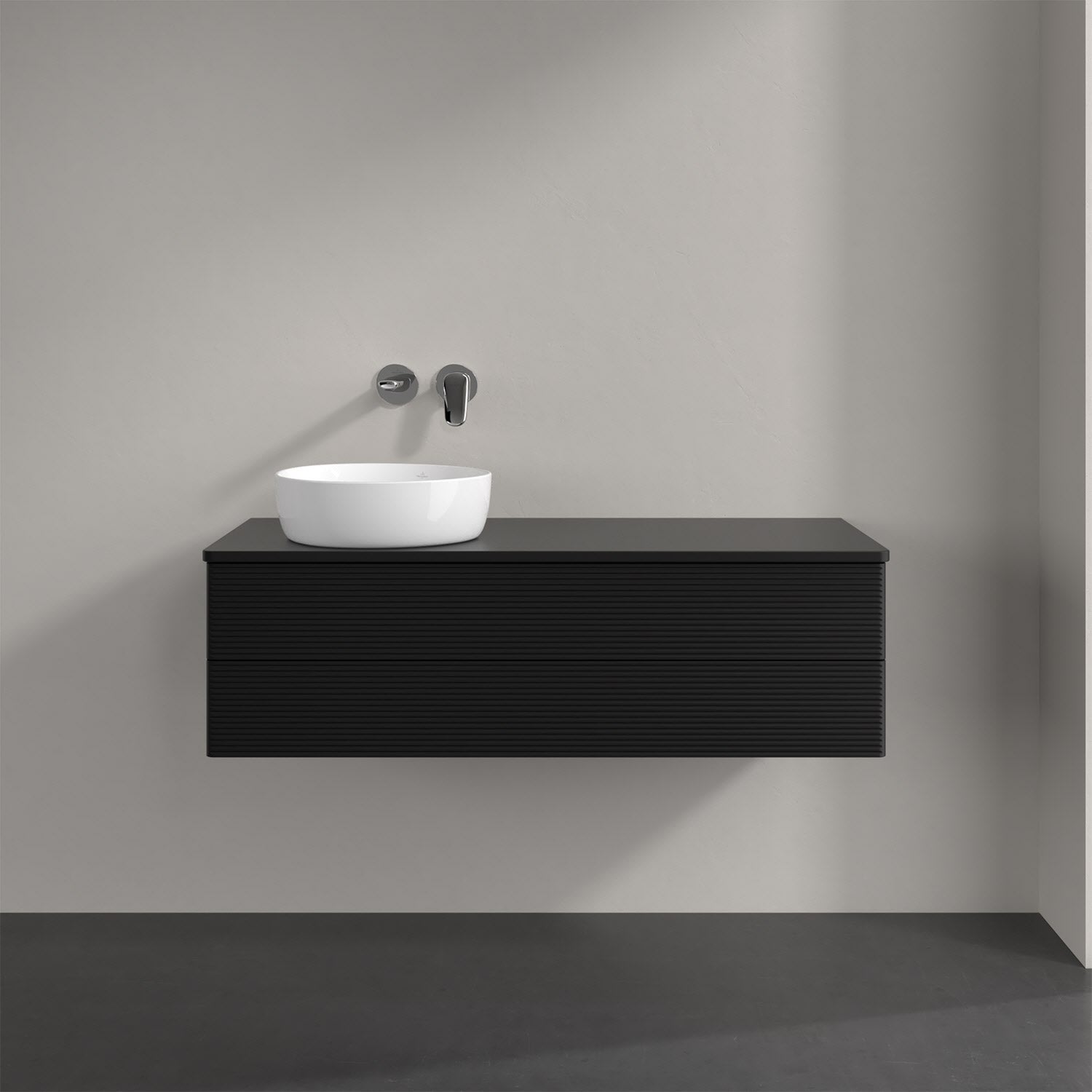 Villeroy & Boch Antao Waschbeckenunterschrank, 120 x 36 cm, 2 Auszüge mit LED-Licht, Front mit Struktur, ohne Hahnloch, für Waschtisch links