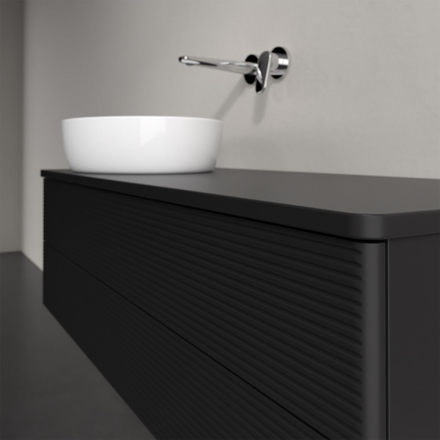Der wandhängende Antao Waschtischunterschrank von Villeroy & Boch bietet nicht nur jede Menge Stauraum – er ist dank seines naturinspirierten Designs mit seinen abgerundeten Kanten auch noch besonders stilvoll und schafft eine gemütliche Atmosphäre im Badezimmer. Auf der Waschtischplatte bietet sich seitlich des Waschtischs viel Platz für Zahnbürstenbecher oder Seifenspender. Zwei geräumige Auszüge bieten viel Platz, um alles Notwendige zu verstauen und Ordnung zu halten. Öffnen lassen sie sich durch leichten Druck auf die strukturierte Front. Dabei aktiviert sich übrigens die Auszugsbeleuchtung in angenehmem Warmweiß. Dank Vollauszug hat man immer alles im Blick und der Antirutschboden verhindert ein Umfallen oder Verrutschen der Gegenstände. Einfach clever! Für eine besonders leichte Pflege sorgt die mehrschichtig deckend lackierte Oberfläche.