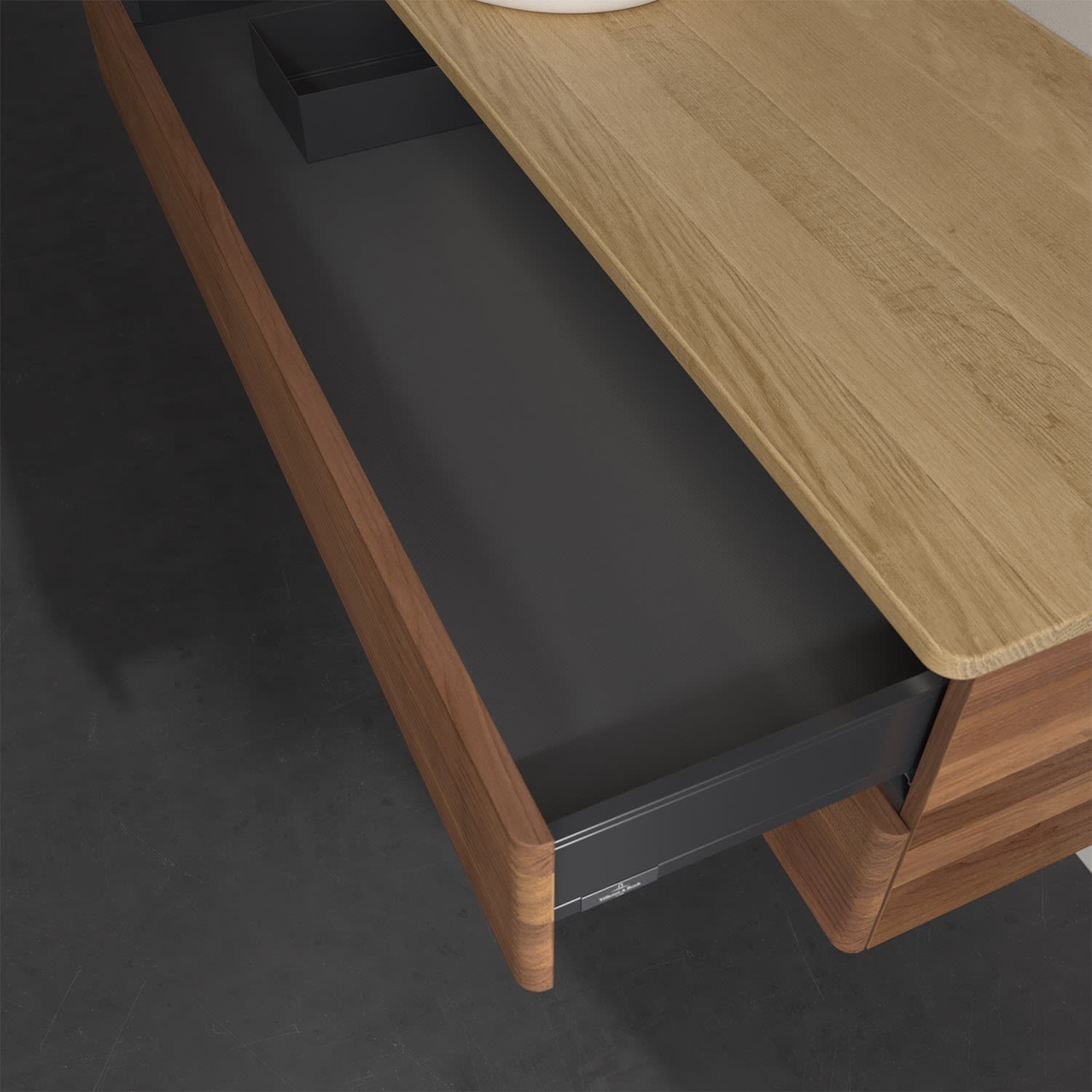 - kein Umfallen oder Verrutschen von Pflegeprodukten in den Schubladen dank rutschhemmendem Boden