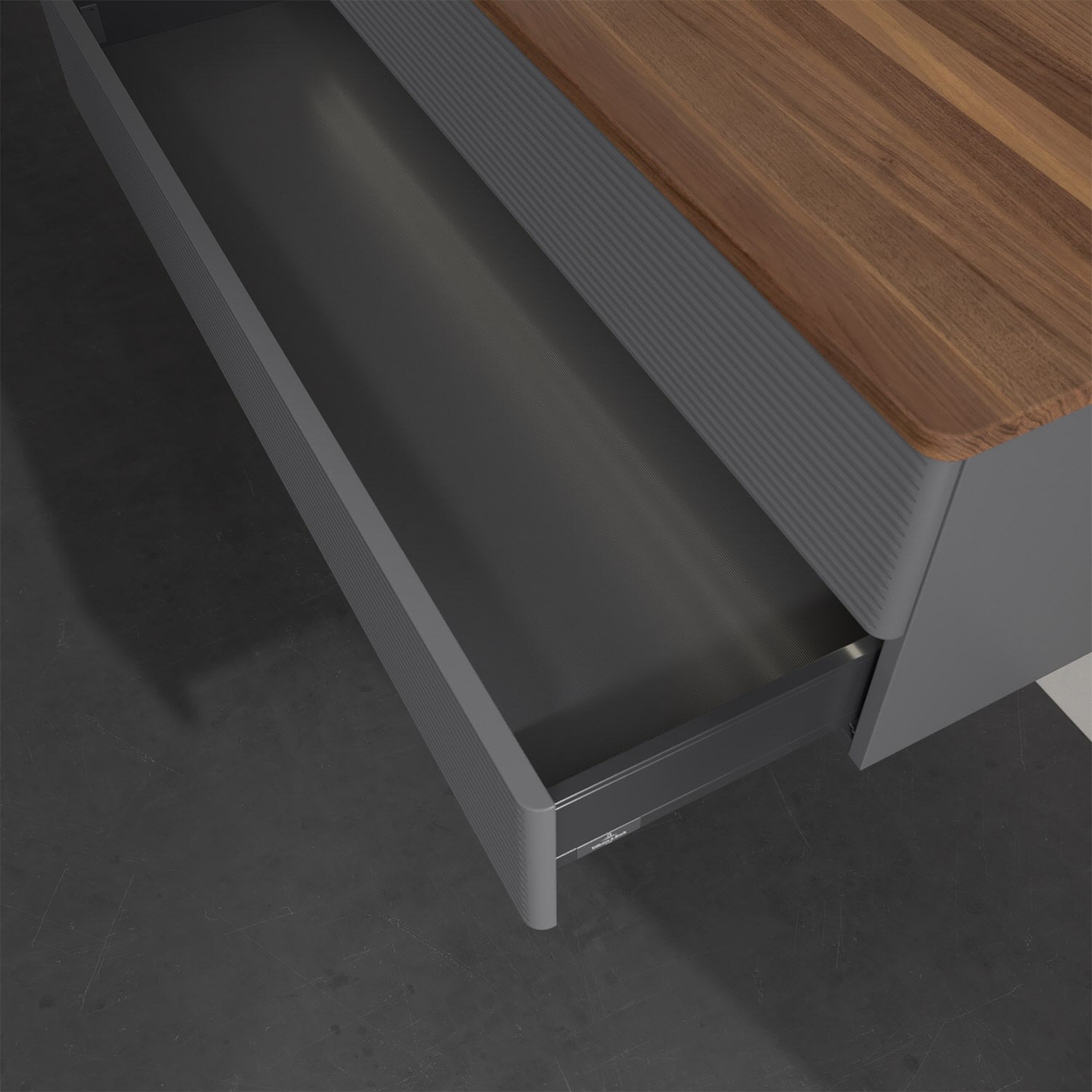 Villeroy & Boch Antao Waschbeckenunterschrank, 120 x 36 cm, 2 Auszüge mit LED-Licht, Front mit Struktur, ohne Hahnloch, für Waschtisch links