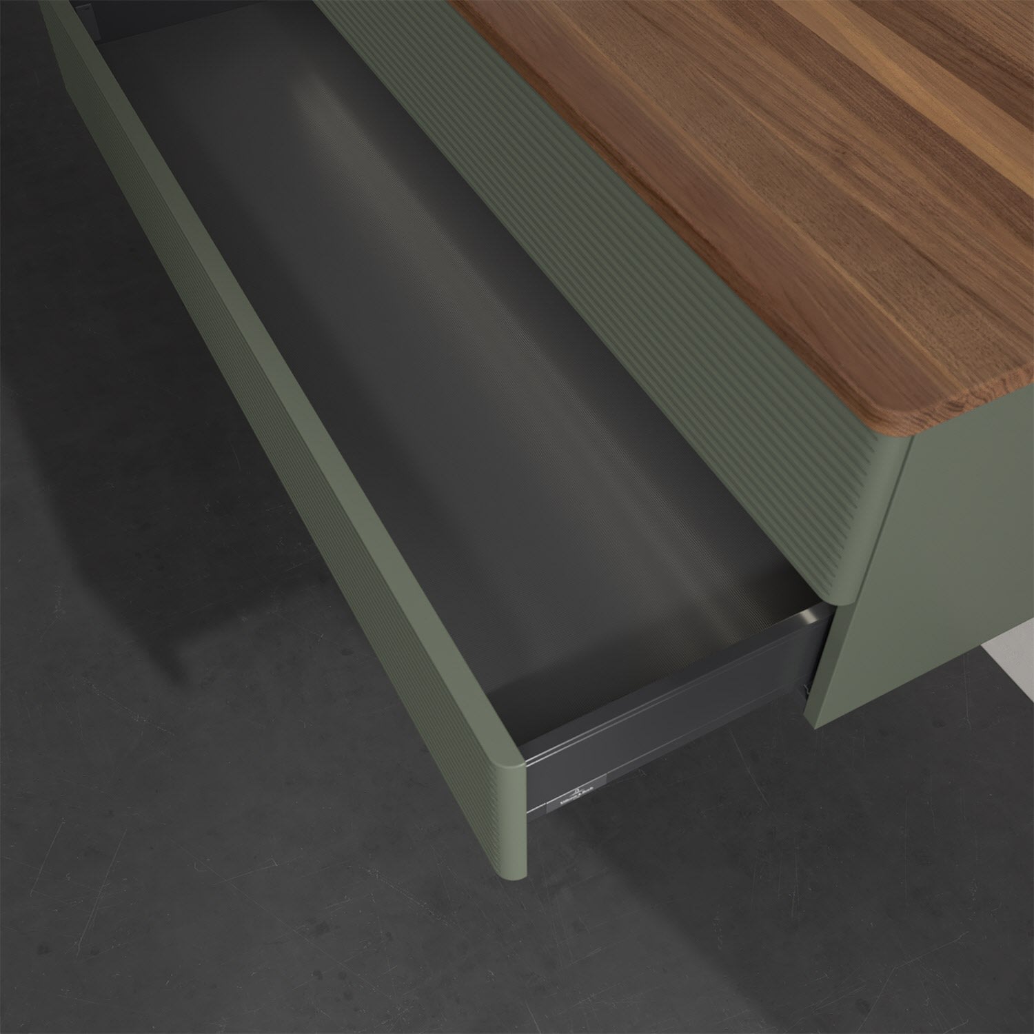 - kein Umfallen oder Verrutschen von Pflegeprodukten in den Schubladen dank rutschhemmendem Boden