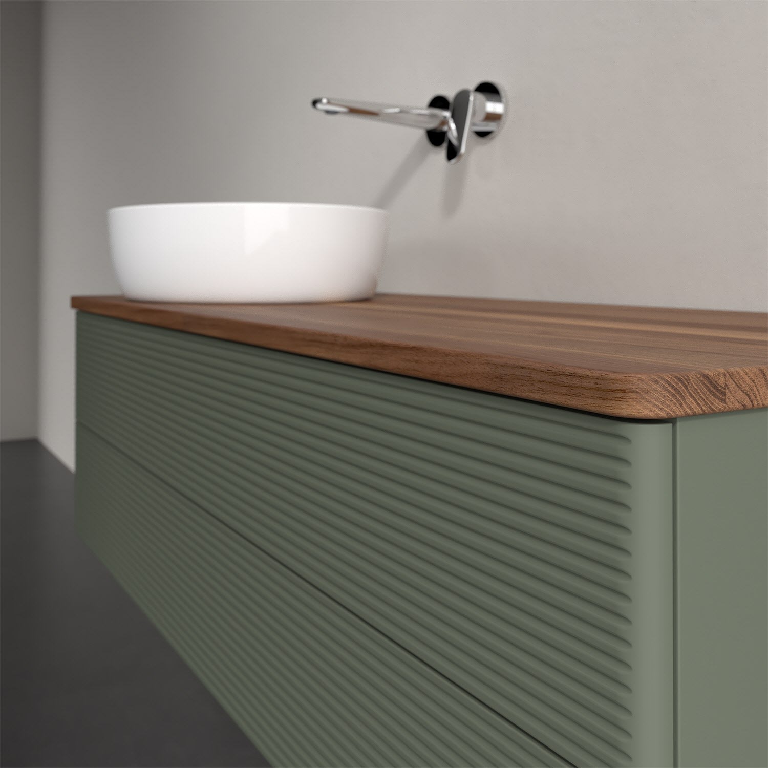 Der wandhängende Antao Waschtischunterschrank von Villeroy & Boch bietet nicht nur jede Menge Stauraum – er ist dank seines naturinspirierten Designs mit seinen abgerundeten Kanten auch noch besonders stilvoll und schafft eine gemütliche Atmosphäre im Badezimmer. Auf der Waschtischplatte bietet sich seitlich des Waschtischs viel Platz für Zahnbürstenbecher oder Seifenspender. Zwei geräumige Auszüge bieten viel Platz, um alles Notwendige zu verstauen und Ordnung zu halten. Öffnen lassen sie sich durch leichten Druck auf die strukturierte Front. Dabei aktiviert sich übrigens die Auszugsbeleuchtung in angenehmem Warmweiß. Dank Vollauszug hat man immer alles im Blick und der Antirutschboden verhindert ein Umfallen oder Verrutschen der Gegenstände. Einfach clever! Für eine besonders leichte Pflege sorgt die mehrschichtig deckend lackierte Oberfläche. Bei der Ausführung in Massivholz wird dank des verarbeiteten Massivholzes jedes Möbel zu einem Unikat, das sich durch das lebendige Naturmaterial durch seine einzigartige Struktur und Maserung auszeichnet.