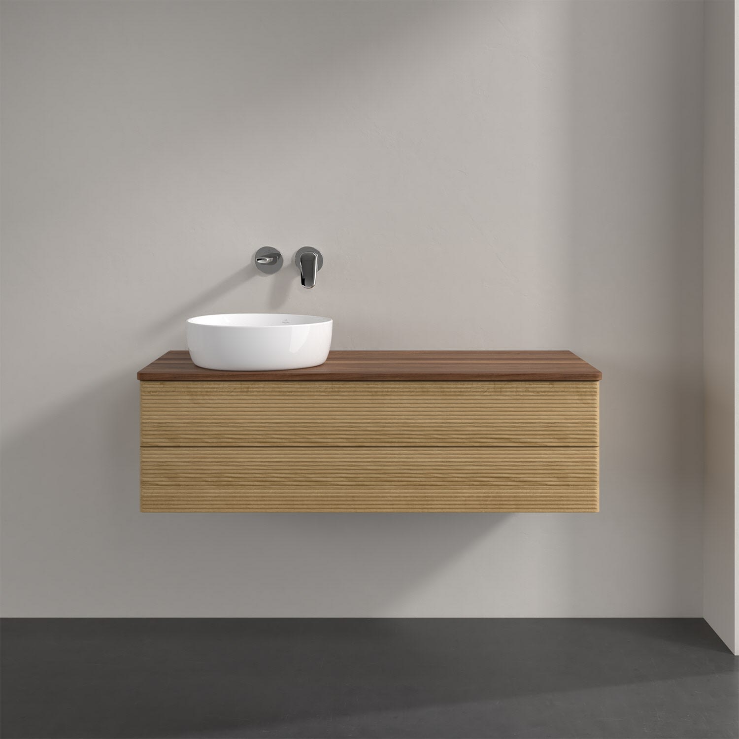 Villeroy & Boch Antao Waschbeckenunterschrank, 120 x 36 cm, 2 Auszüge mit LED-Licht, Front mit Struktur, ohne Hahnloch, für Waschtisch links
