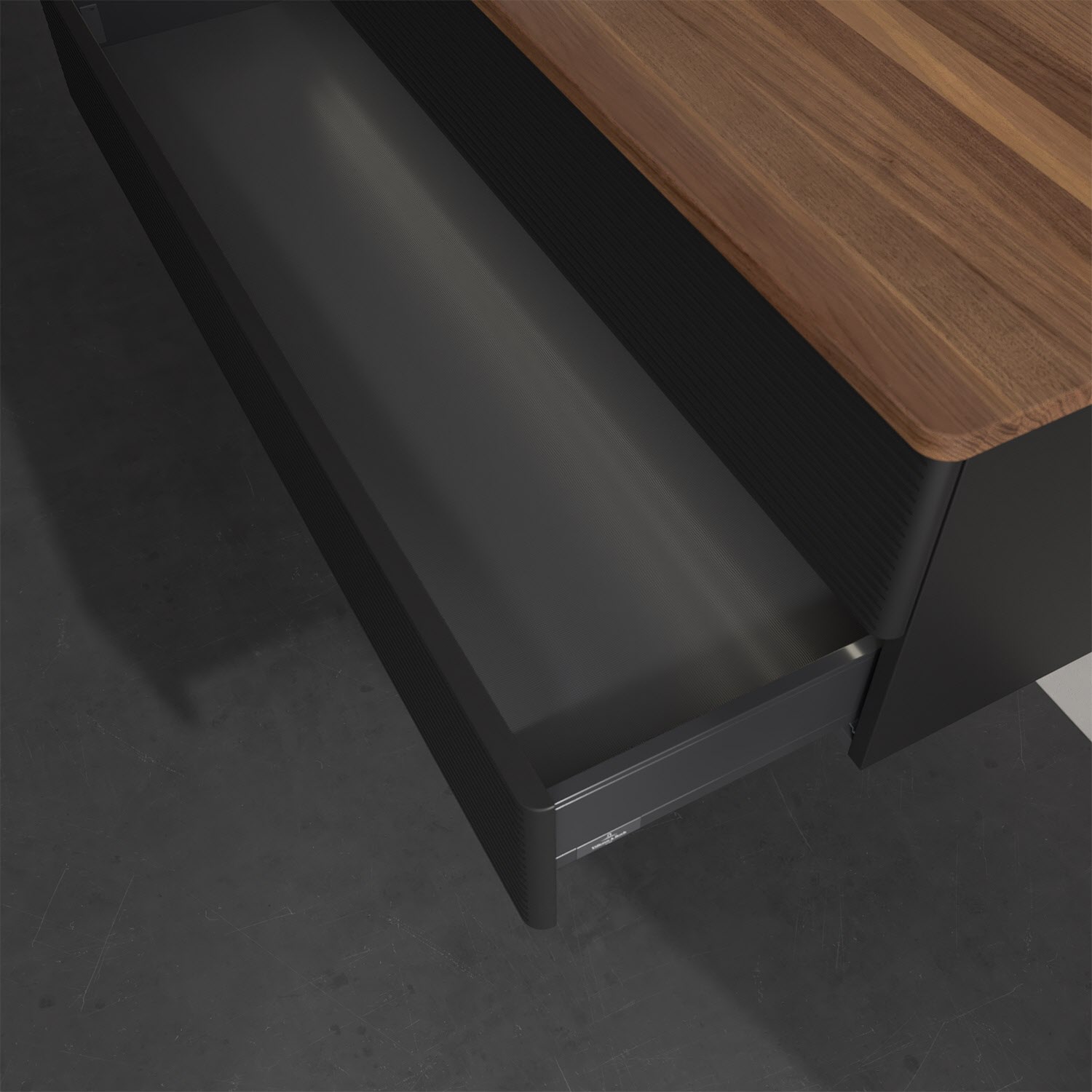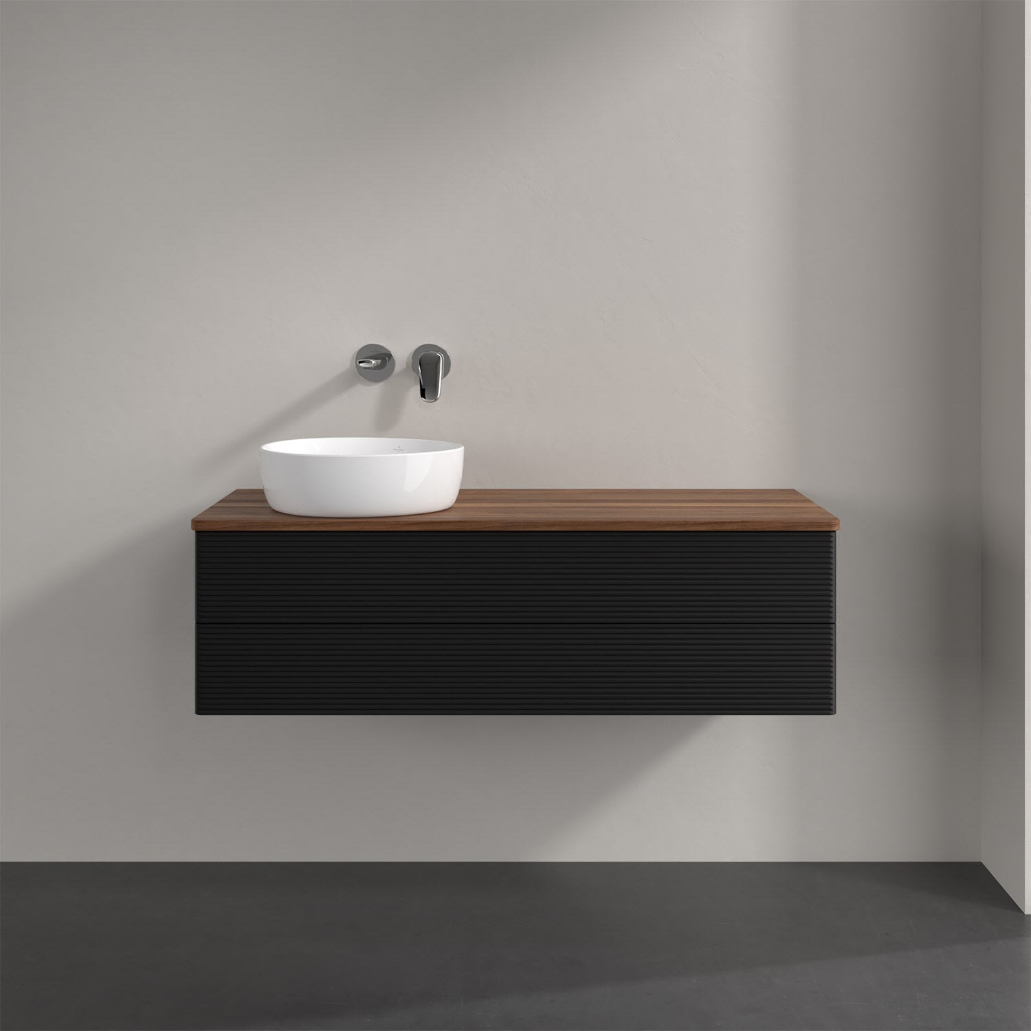 Villeroy & Boch Antao Waschbeckenunterschrank, 120 x 36 cm, 2 Auszüge mit LED-Licht, Front mit Struktur, ohne Hahnloch, für Waschtisch links
