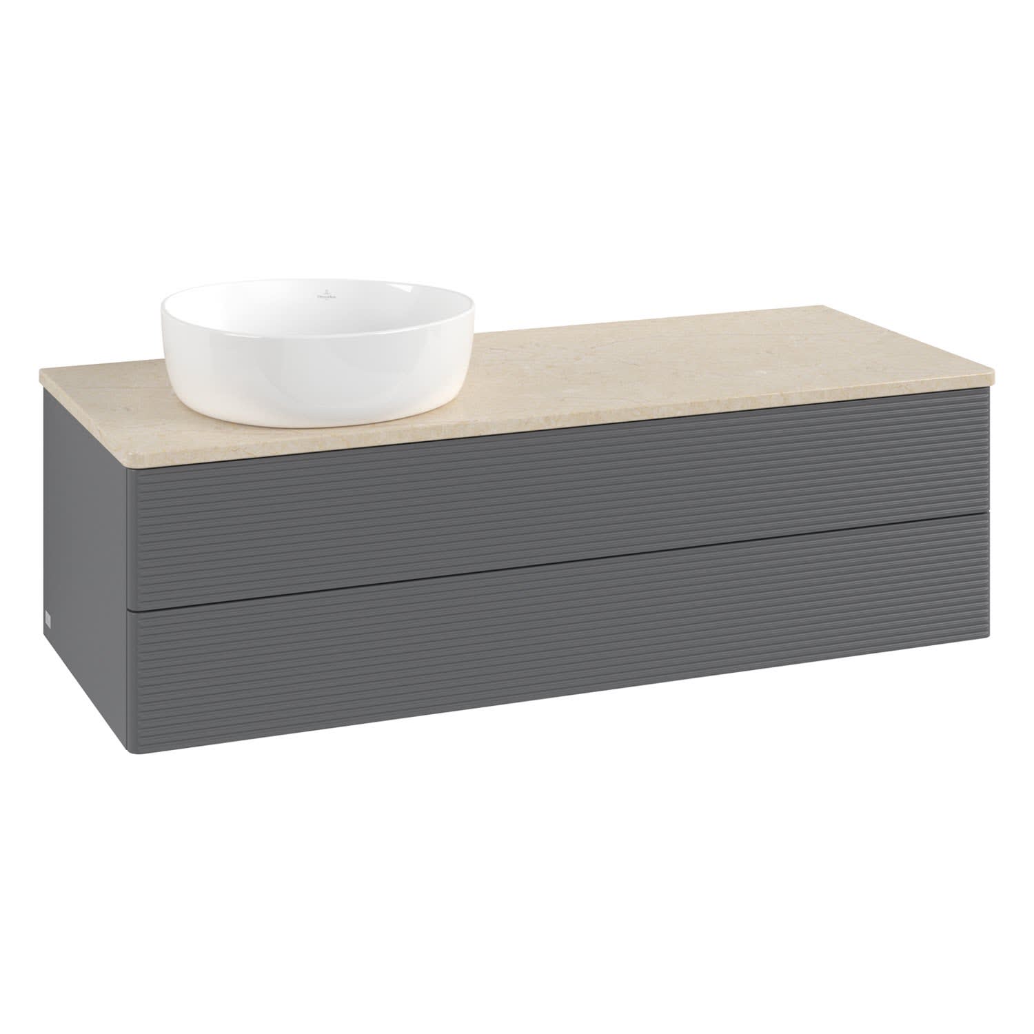 Villeroy & Boch Antao Waschbeckenunterschrank, 120 x 36 cm, 2 Auszüge mit LED-Licht, Front mit Struktur, ohne Hahnloch, für Waschtisch links