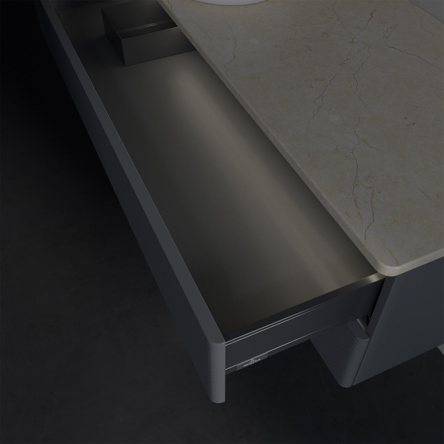 - kein Umfallen oder Verrutschen von Pflegeprodukten in den Schubladen dank rutschhemmendem Boden