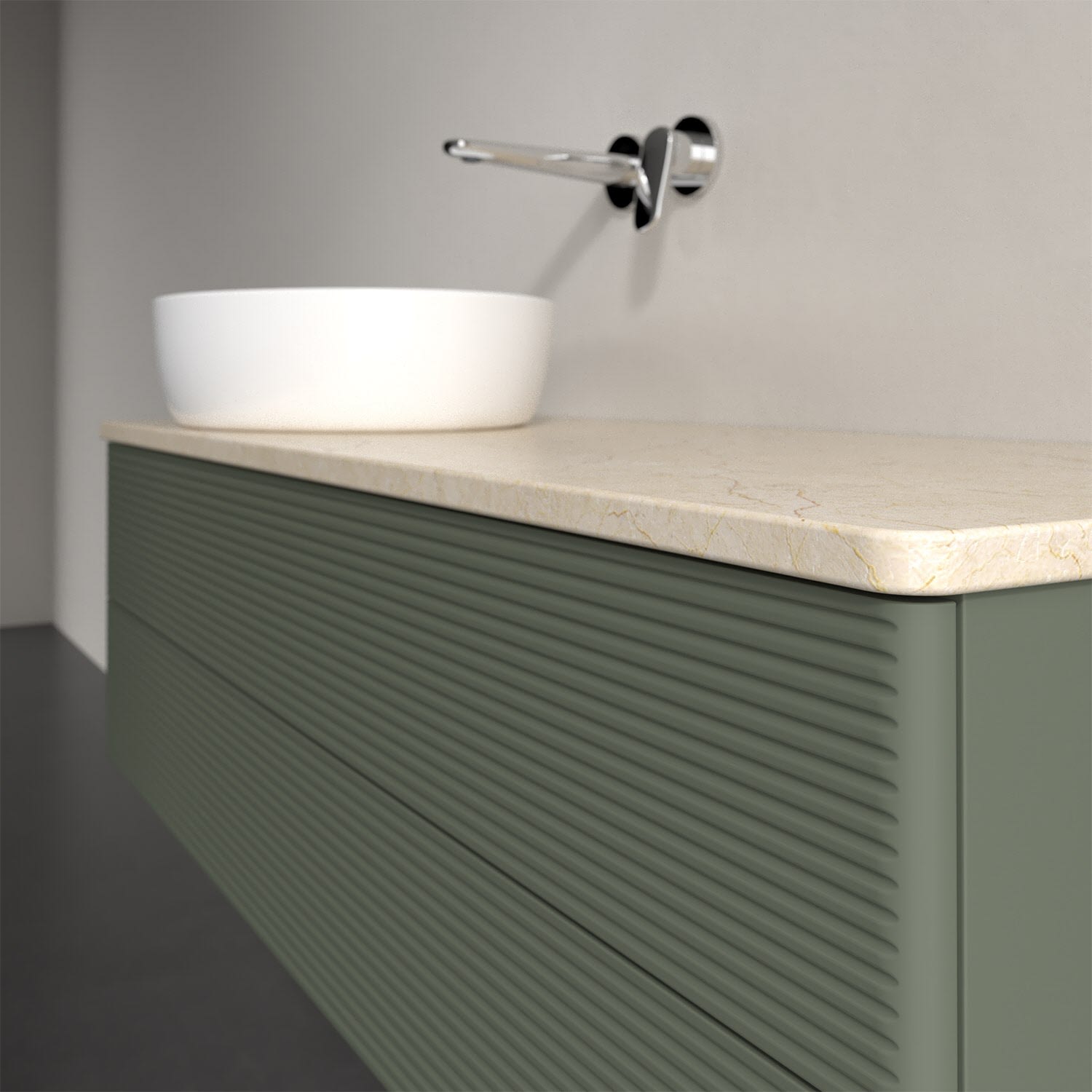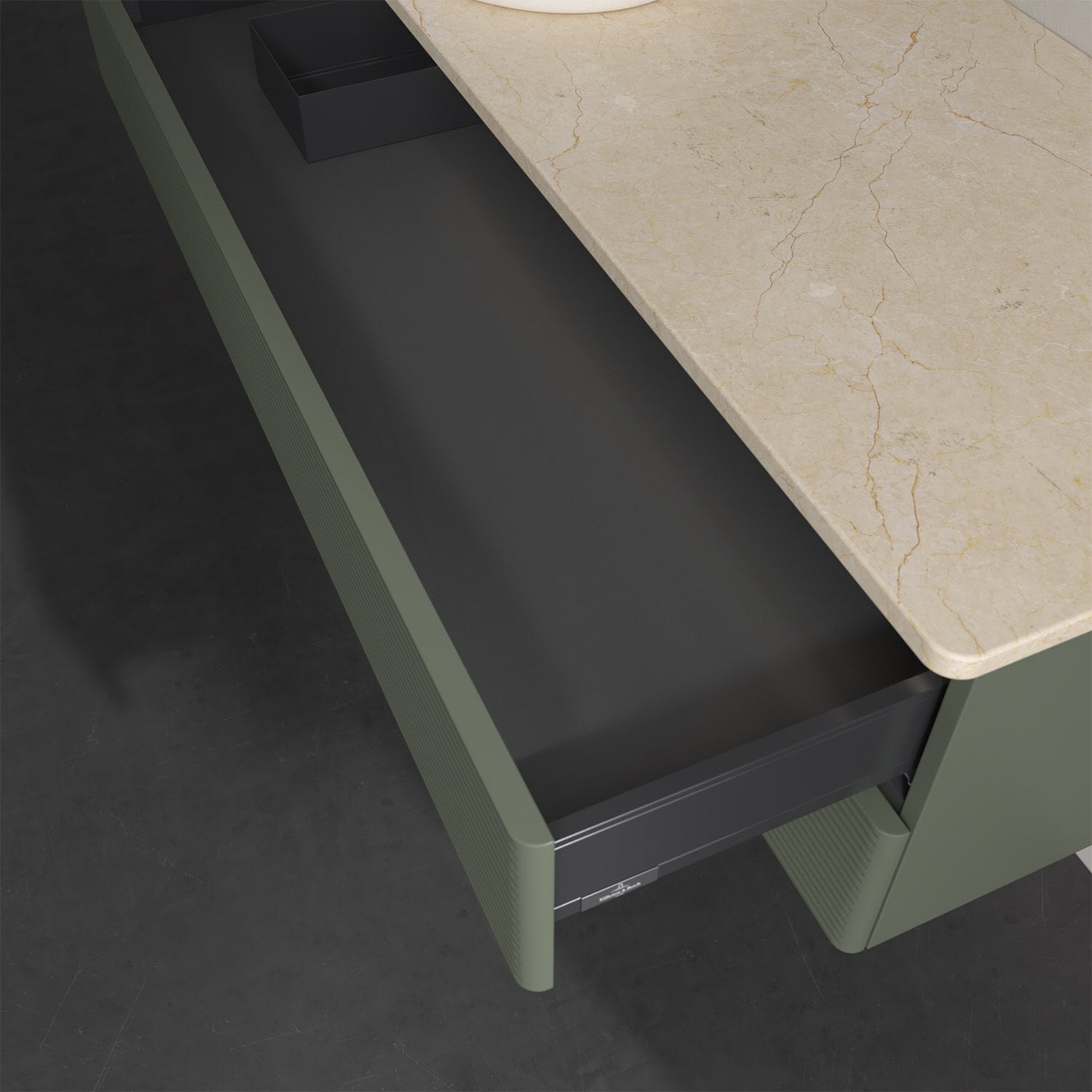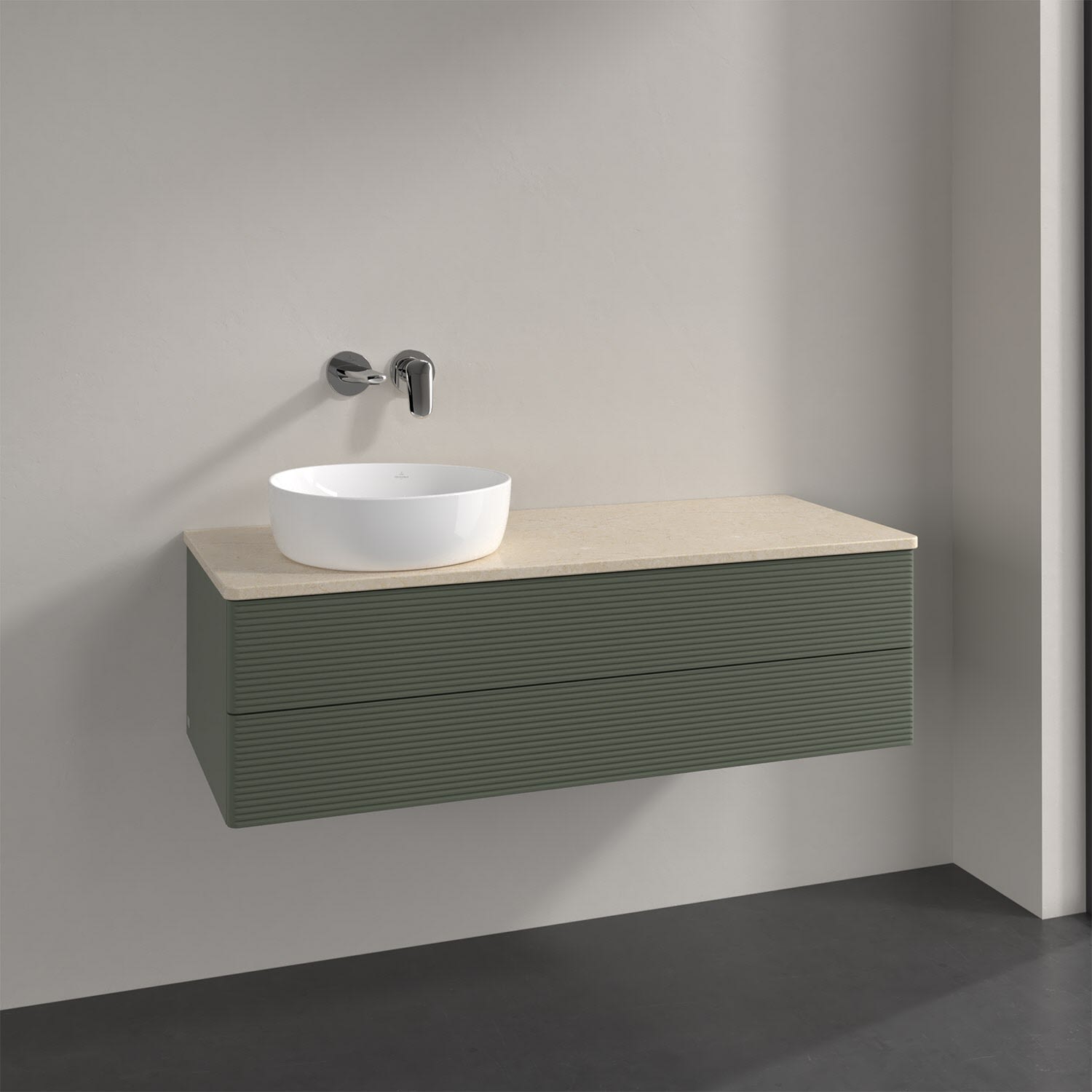 Villeroy & Boch Antao Waschbeckenunterschrank, 120 x 36 cm, 2 Auszüge mit LED-Licht, Front mit Struktur, ohne Hahnloch, für Waschtisch links