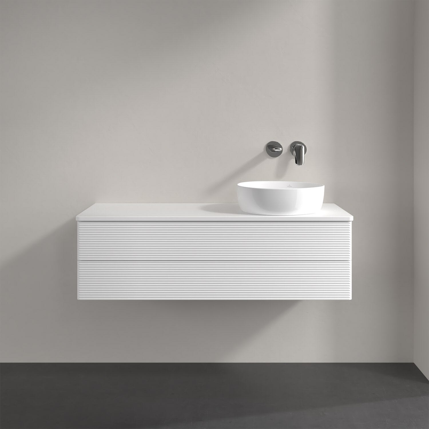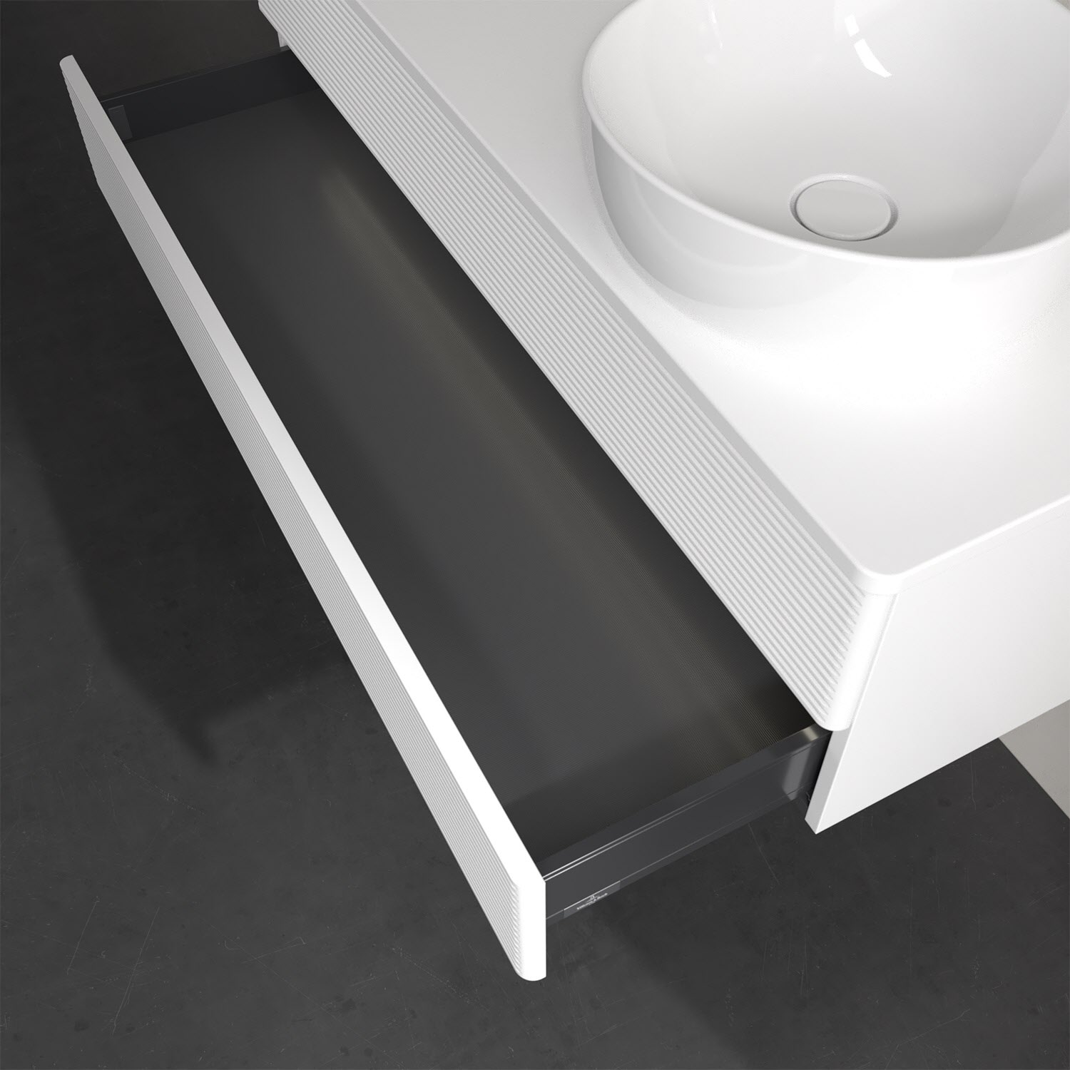 Villeroy & Boch Antao Waschbeckenunterschrank, 120 x 36 cm, 2 Auszüge mit LED-Licht, Front mit Struktur, ohne Hahnloch, für Waschtisch rechts