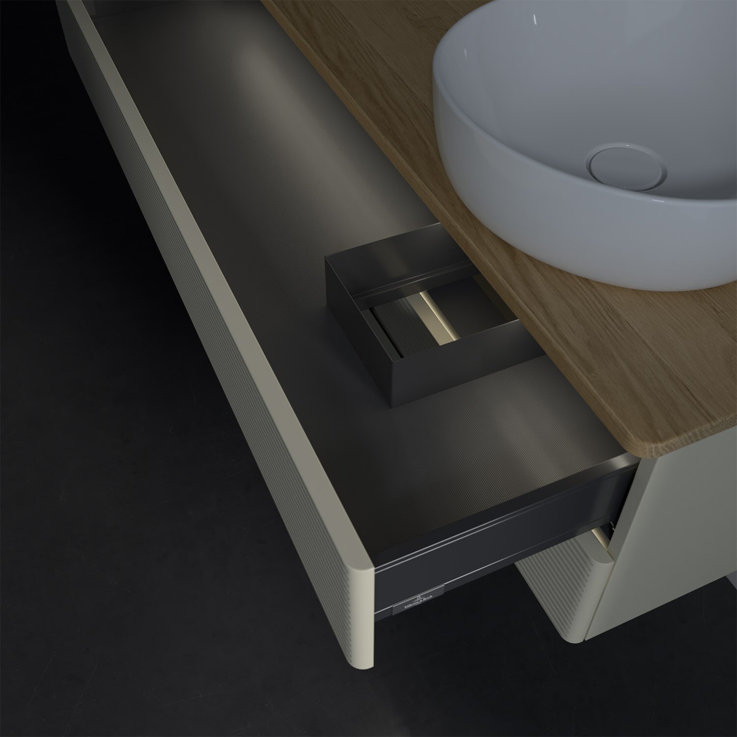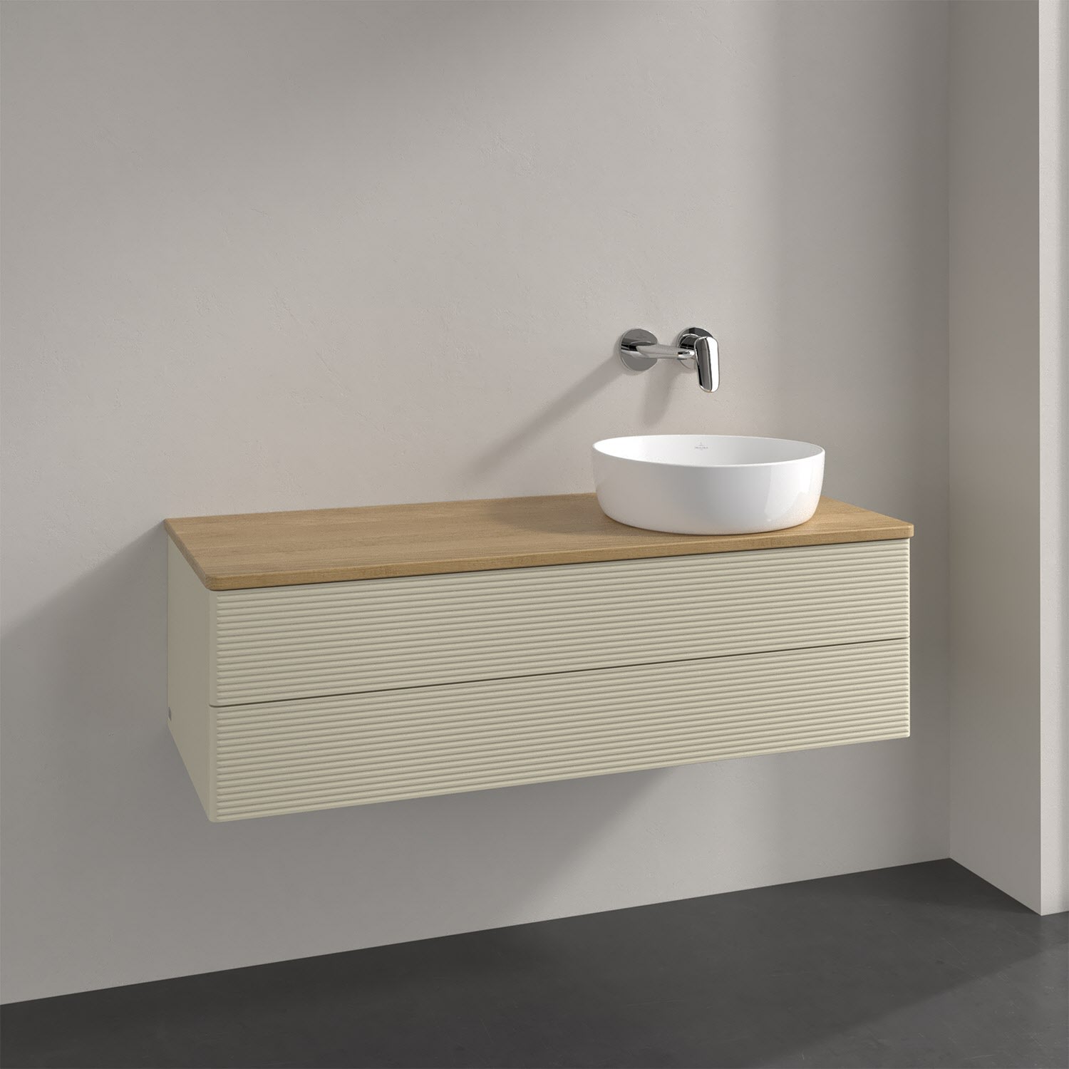 Villeroy & Boch Antao Waschbeckenunterschrank, 120 x 36 cm, 2 Auszüge mit LED-Licht, Front mit Struktur, ohne Hahnloch, für Waschtisch rechts