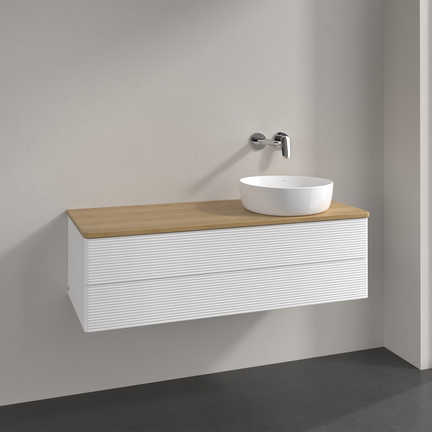 Villeroy & Boch Antao Waschbeckenunterschrank, 120 x 36 cm, 2 Auszüge mit LED-Licht, Front mit Struktur, ohne Hahnloch, für Waschtisch rechts