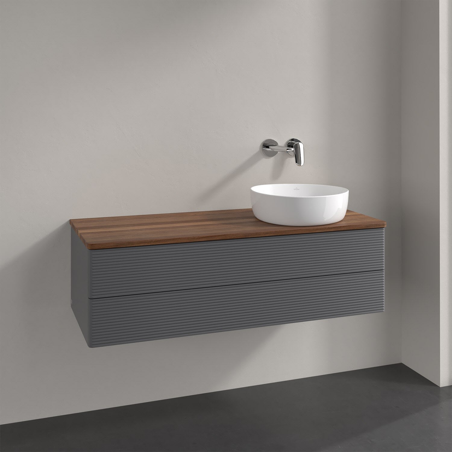 Villeroy & Boch Antao Waschbeckenunterschrank, 120 x 36 cm, 2 Auszüge mit LED-Licht, Front mit Struktur, ohne Hahnloch, für Waschtisch rechts