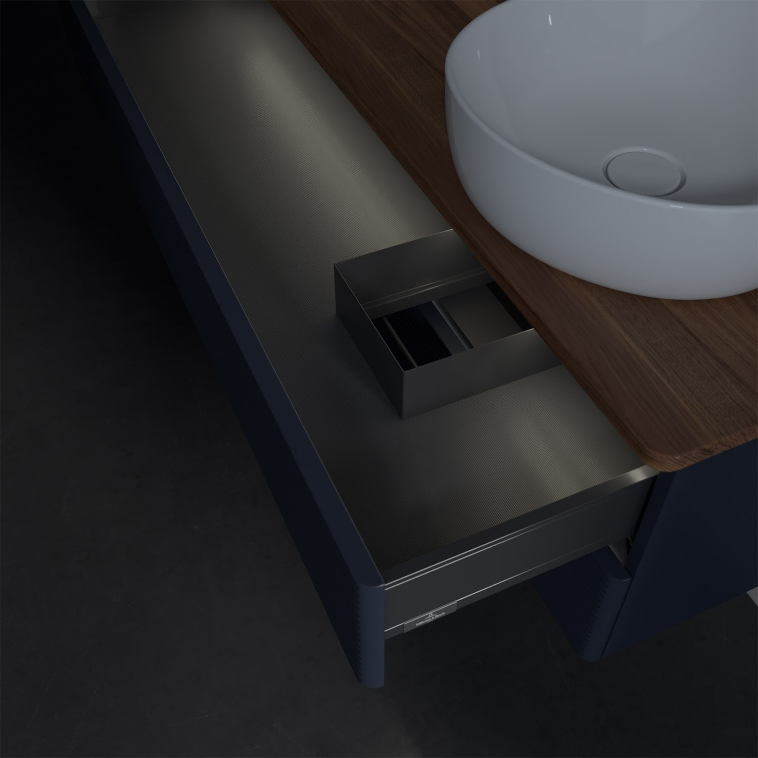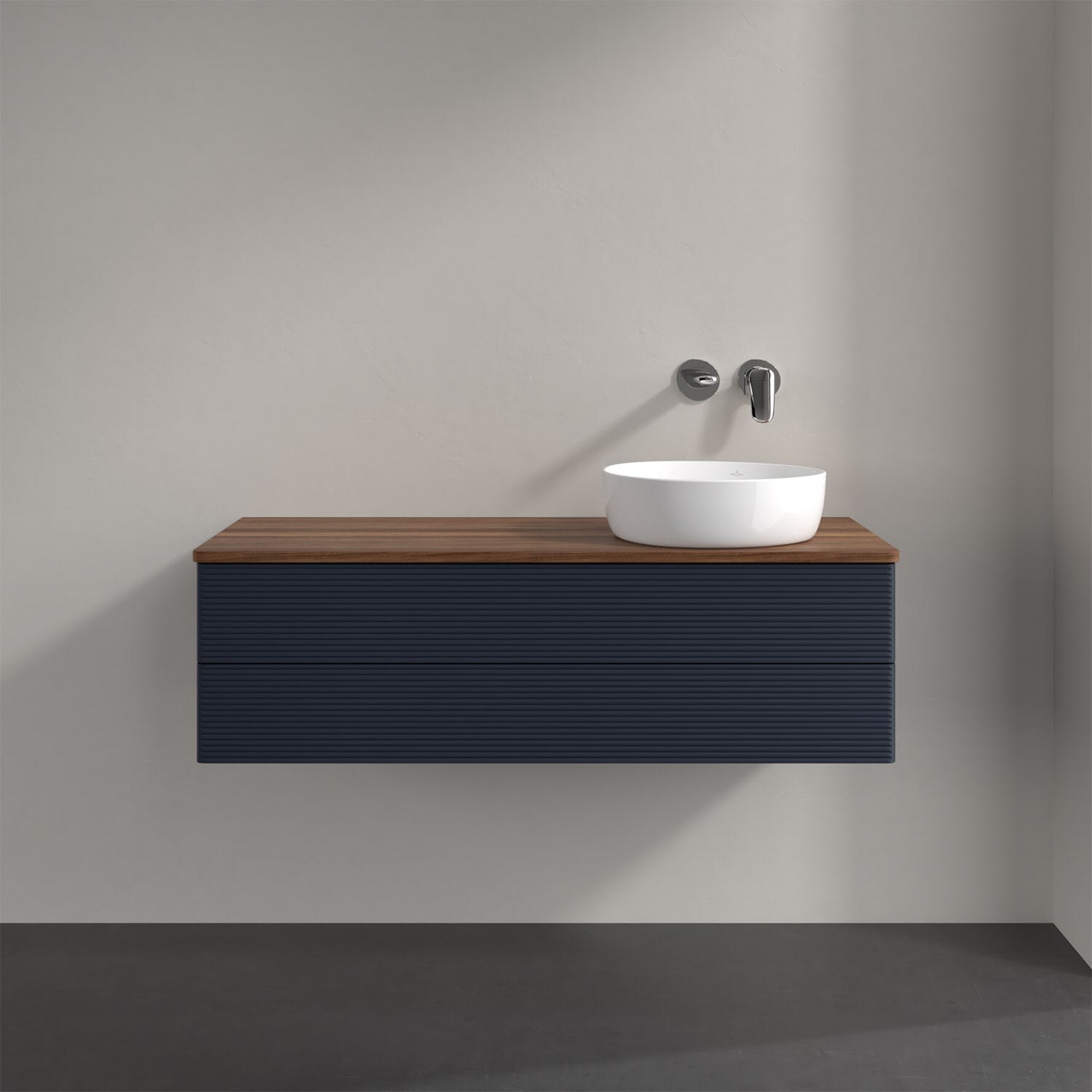 Villeroy & Boch Antao Waschbeckenunterschrank, 120 x 36 cm, 2 Auszüge mit LED-Licht, Front mit Struktur, ohne Hahnloch, für Waschtisch rechts