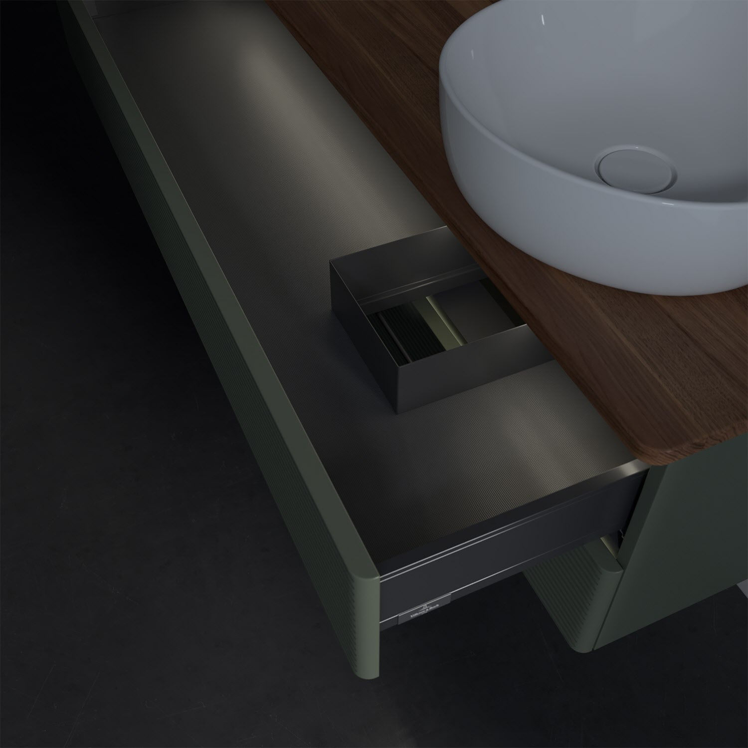 - kein Umfallen oder Verrutschen von Pflegeprodukten in den Schubladen dank rutschhemmendem Boden