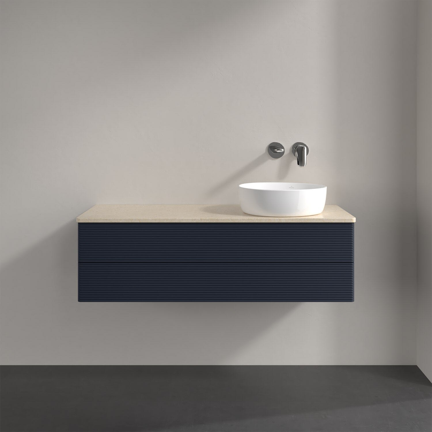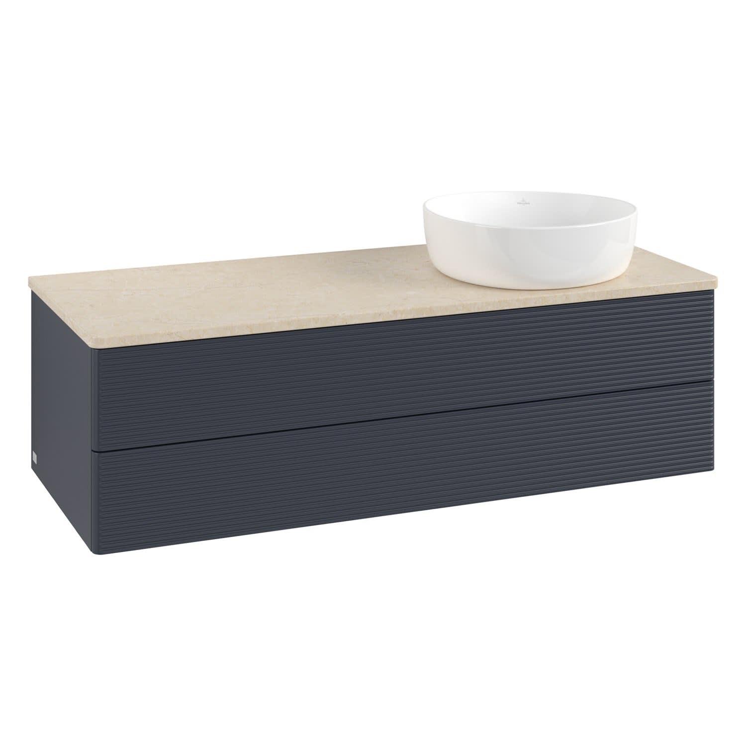 Villeroy & Boch Antao Waschbeckenunterschrank, 120 x 36 cm, 2 Auszüge mit LED-Licht, Front mit Struktur, ohne Hahnloch, für Waschtisch rechts