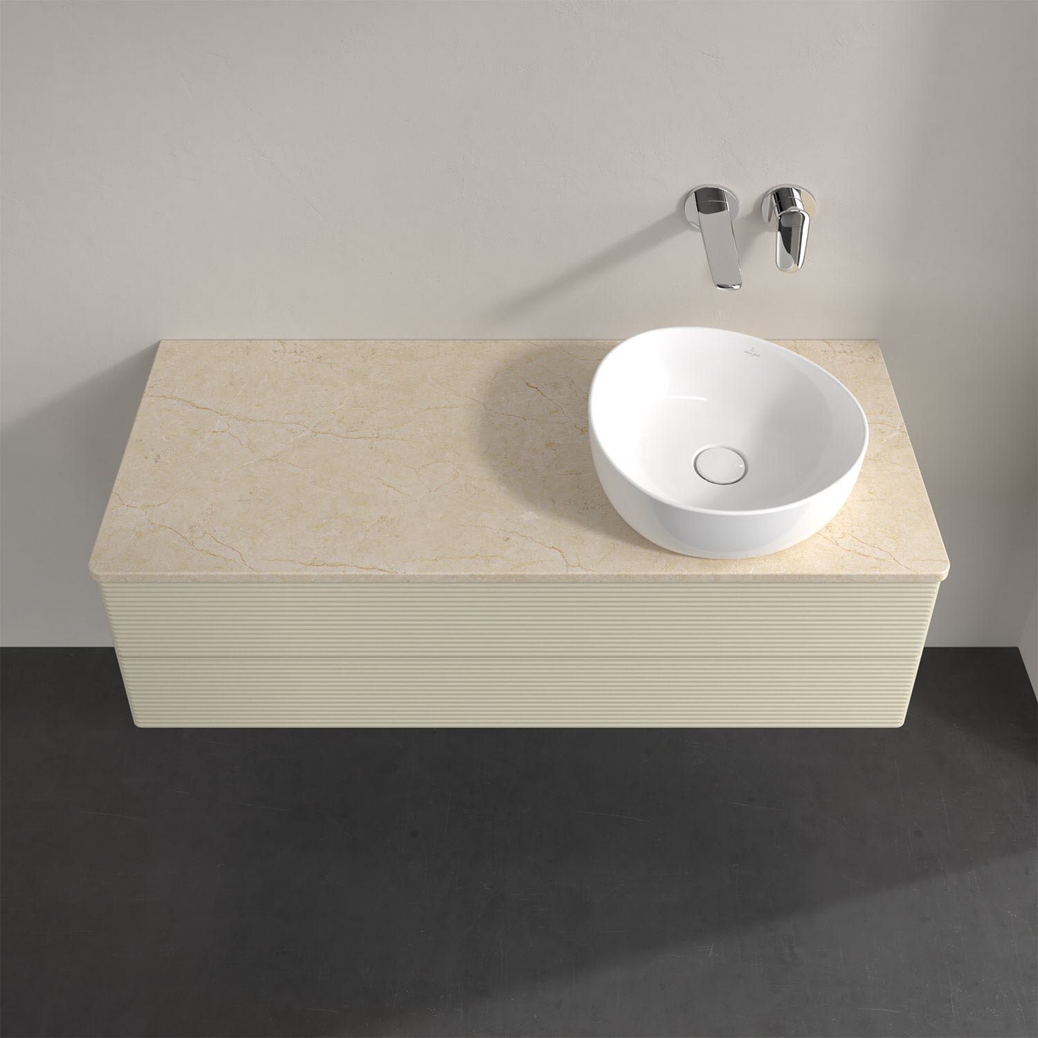 Für diesen Waschbeckenunterschrank stehen Ihnen Aufsatzwaschtische aus verschiedenen Serien zur Verfügung (siehe "Passliste" unter Downloads). Ein ausgewähltes Beispiel finden Sie im Zubehör. Den Waschtisch bitte separat mitbestellen.