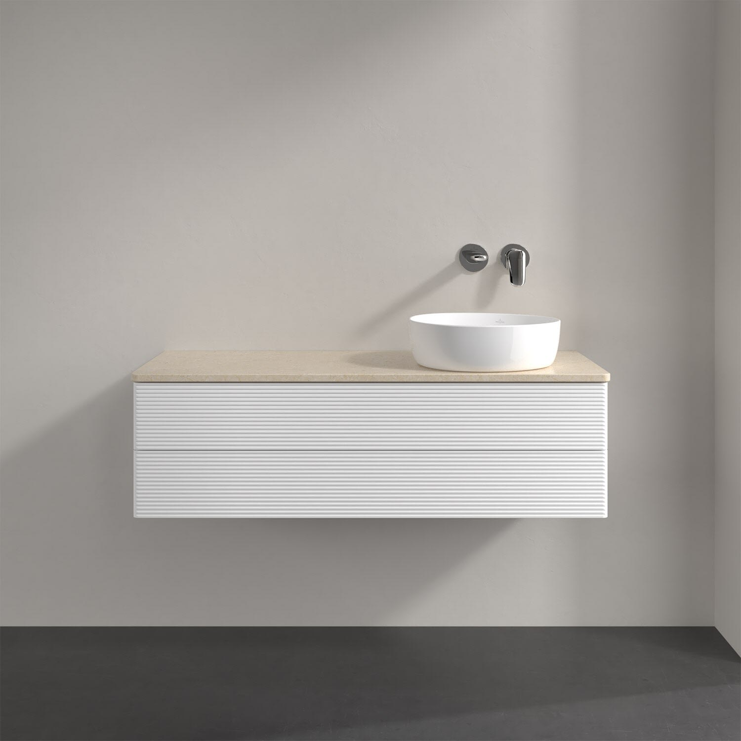 Villeroy & Boch Antao Waschbeckenunterschrank, 120 x 36 cm, 2 Auszüge mit LED-Licht, Front mit Struktur, ohne Hahnloch, für Waschtisch rechts