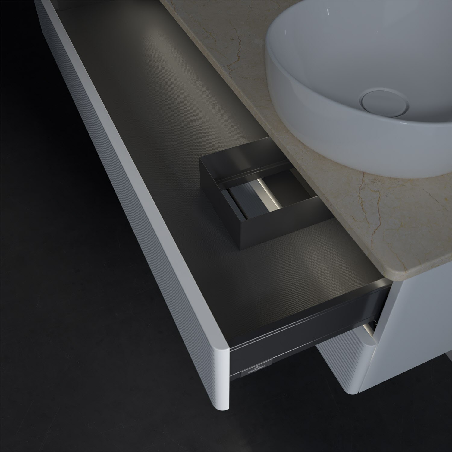 - kein Umfallen oder Verrutschen von Pflegeprodukten in den Schubladen dank rutschhemmendem Boden