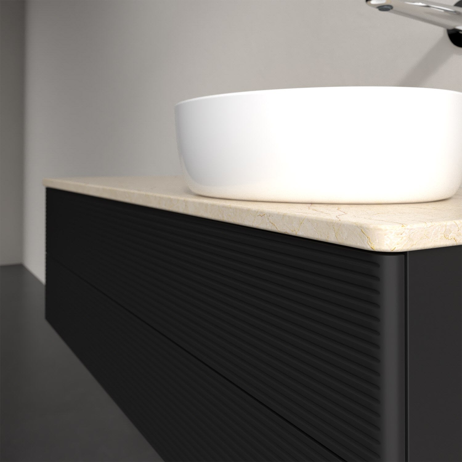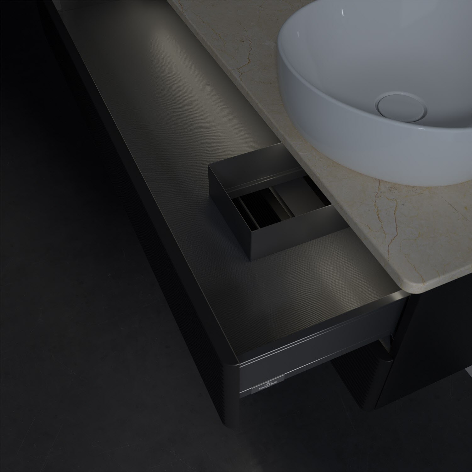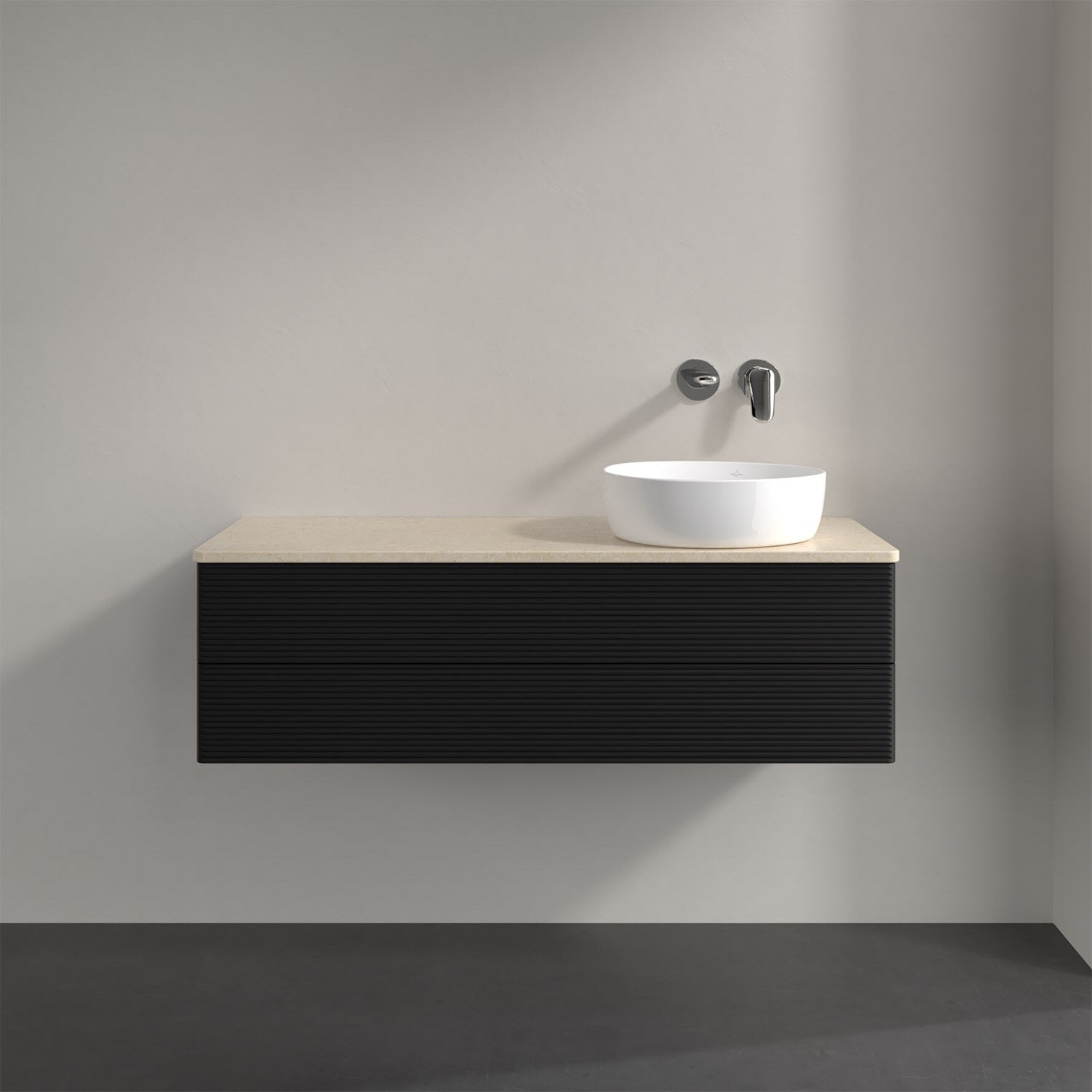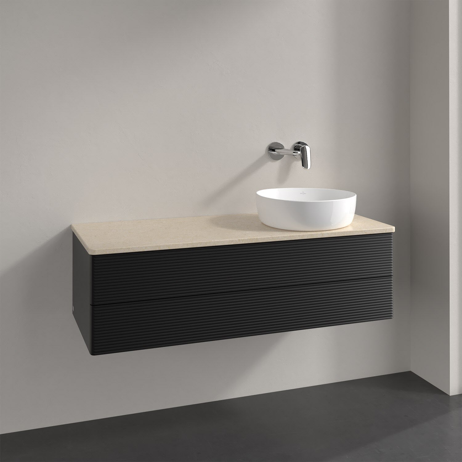 Villeroy & Boch Antao Waschbeckenunterschrank, 120 x 36 cm, 2 Auszüge mit LED-Licht, Front mit Struktur, ohne Hahnloch, für Waschtisch rechts
