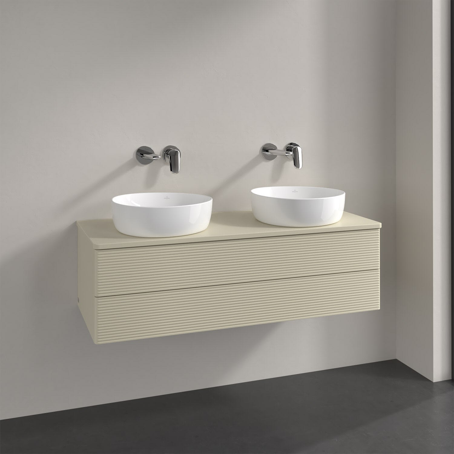 Villeroy & Boch Antao Waschbeckenunterschrank, 120 x 36 cm, 2 Auszüge mit LED-Licht, Front mit Struktur, ohne Hahnloch, für Waschtisch links und recht