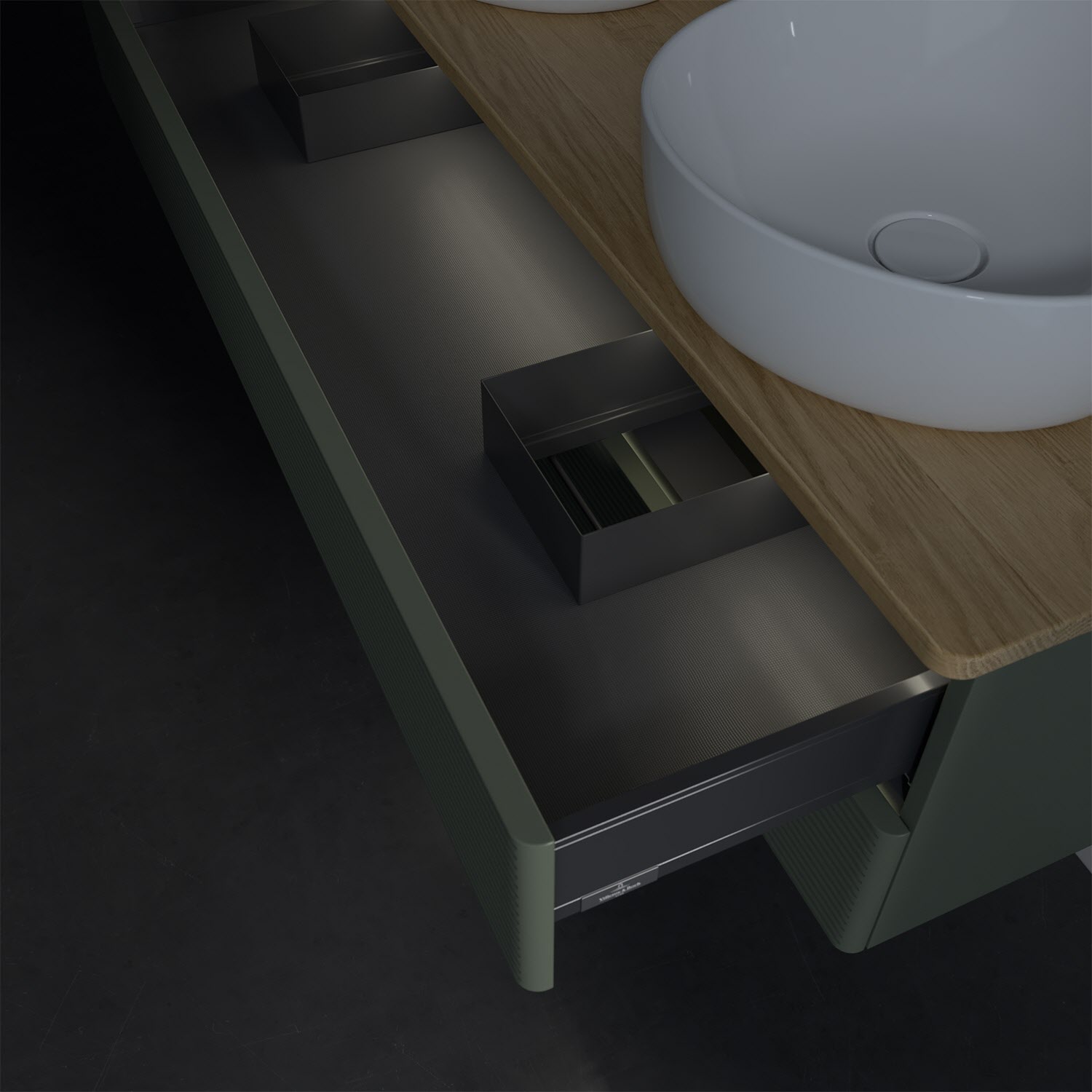 - kein Umfallen oder Verrutschen von Pflegeprodukten in den Schubladen dank rutschhemmendem Boden