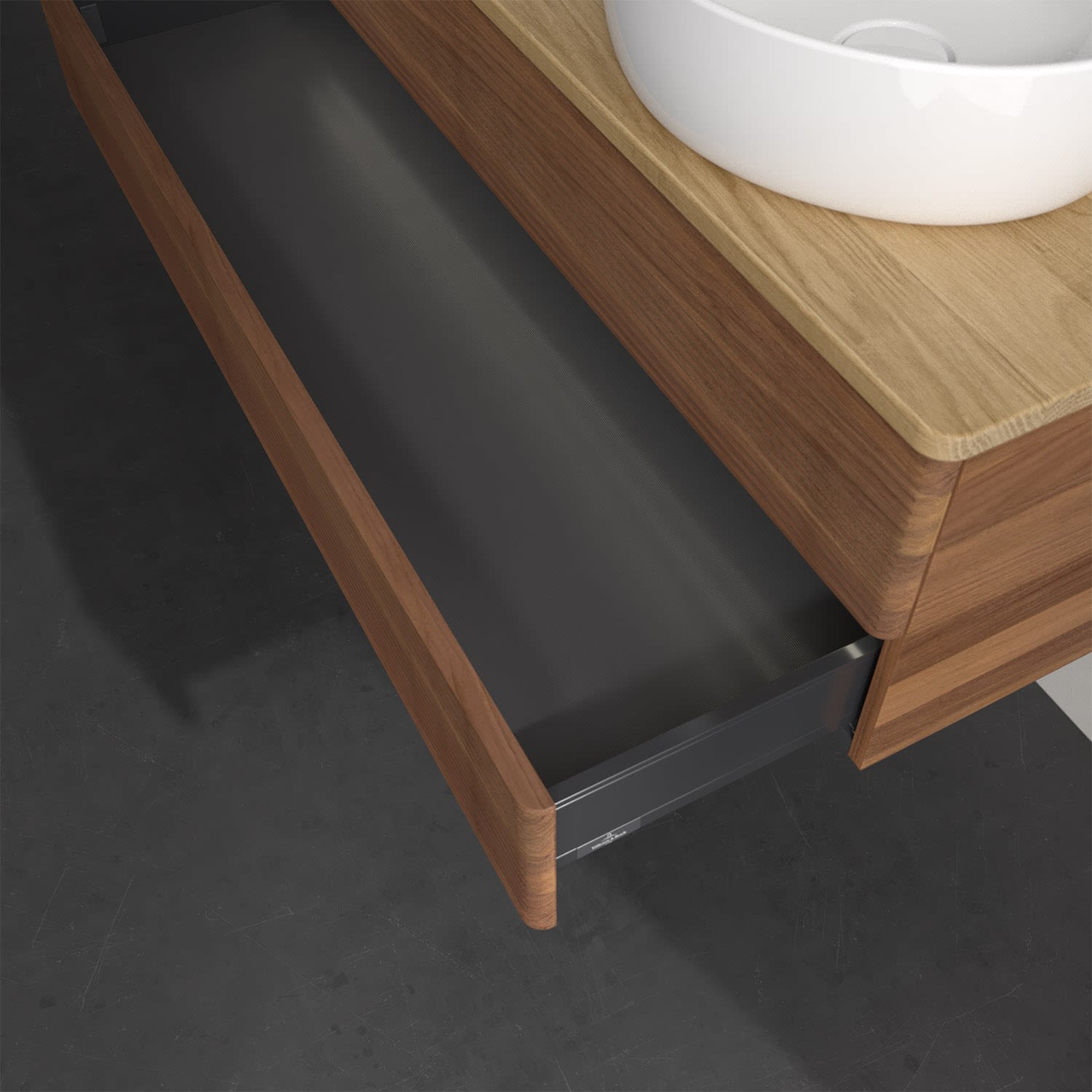 - kein Umfallen oder Verrutschen von Pflegeprodukten in den Schubladen dank rutschhemmendem Boden