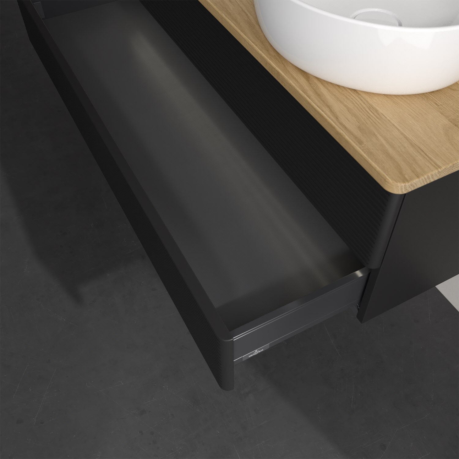 Villeroy & Boch Antao Waschbeckenunterschrank, 120 x 36 cm, 2 Auszüge mit LED-Licht, Front mit Struktur, ohne Hahnloch, für Waschtisch links und recht