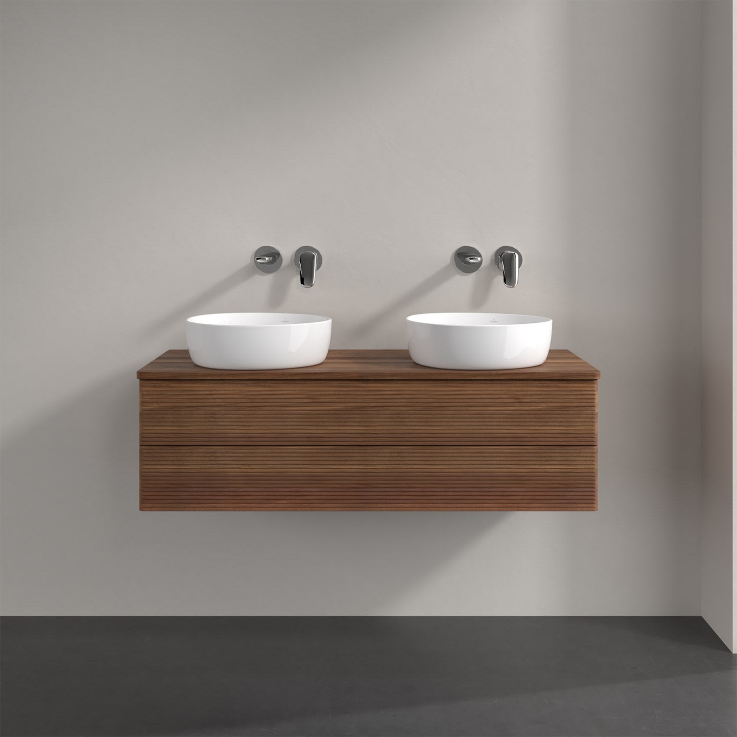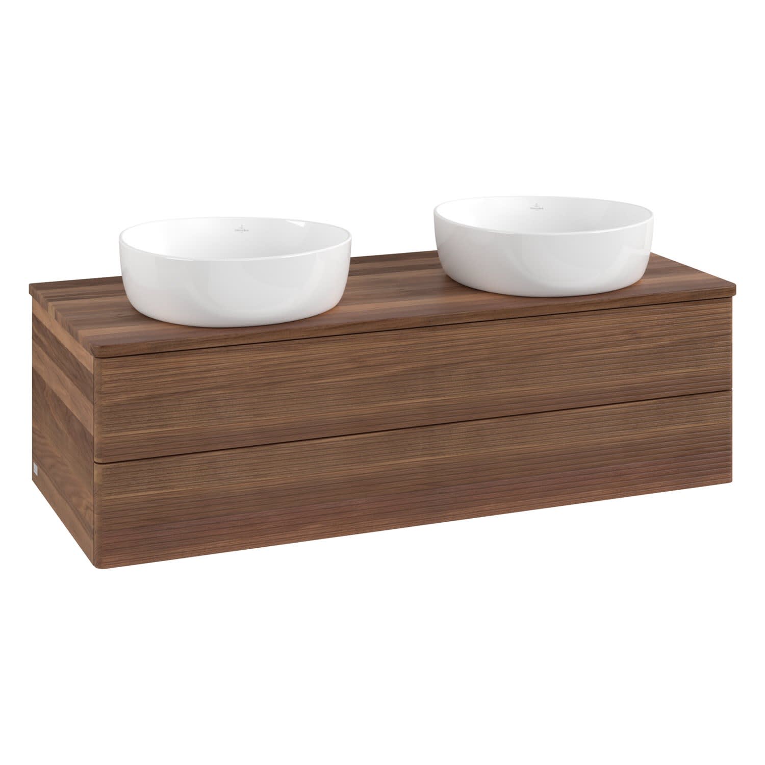 Der wandhängende Antao Waschtischunterschrank von Villeroy & Boch bietet nicht nur jede Menge Stauraum – er ist dank seines naturinspirierten Designs mit seinen abgerundeten Kanten auch noch besonders stilvoll und schafft eine gemütliche Atmosphäre im Badezimmer. Kombiniert mit zwei passenden Aufsatzwaschtischen also die ideale Wahl. Zwei geräumige Auszüge bieten viel Platz, um alles Notwendige zu verstauen und Ordnung zu halten. Öffnen lassen sie sich durch leichten Druck auf die strukturierte Front. Dabei aktiviert sich übrigens die Auszugsbeleuchtung in angenehmem Warmweiß. Dank Vollauszug hat man immer alles im Blick und der Antirutschboden verhindert ein Umfallen oder Verrutschen der Gegenstände. Einfach clever! Für eine besonders leichte Pflege sorgt die mehrschichtig deckend lackierte Oberfläche. Bei der Ausführung in Massivholz wird dank des verarbeiteten Massivholzes jedes Möbel zu einem Unikat, das sich durch das lebendige Naturmaterial durch seine einzigartige Struktur und Maserung auszeichnet.