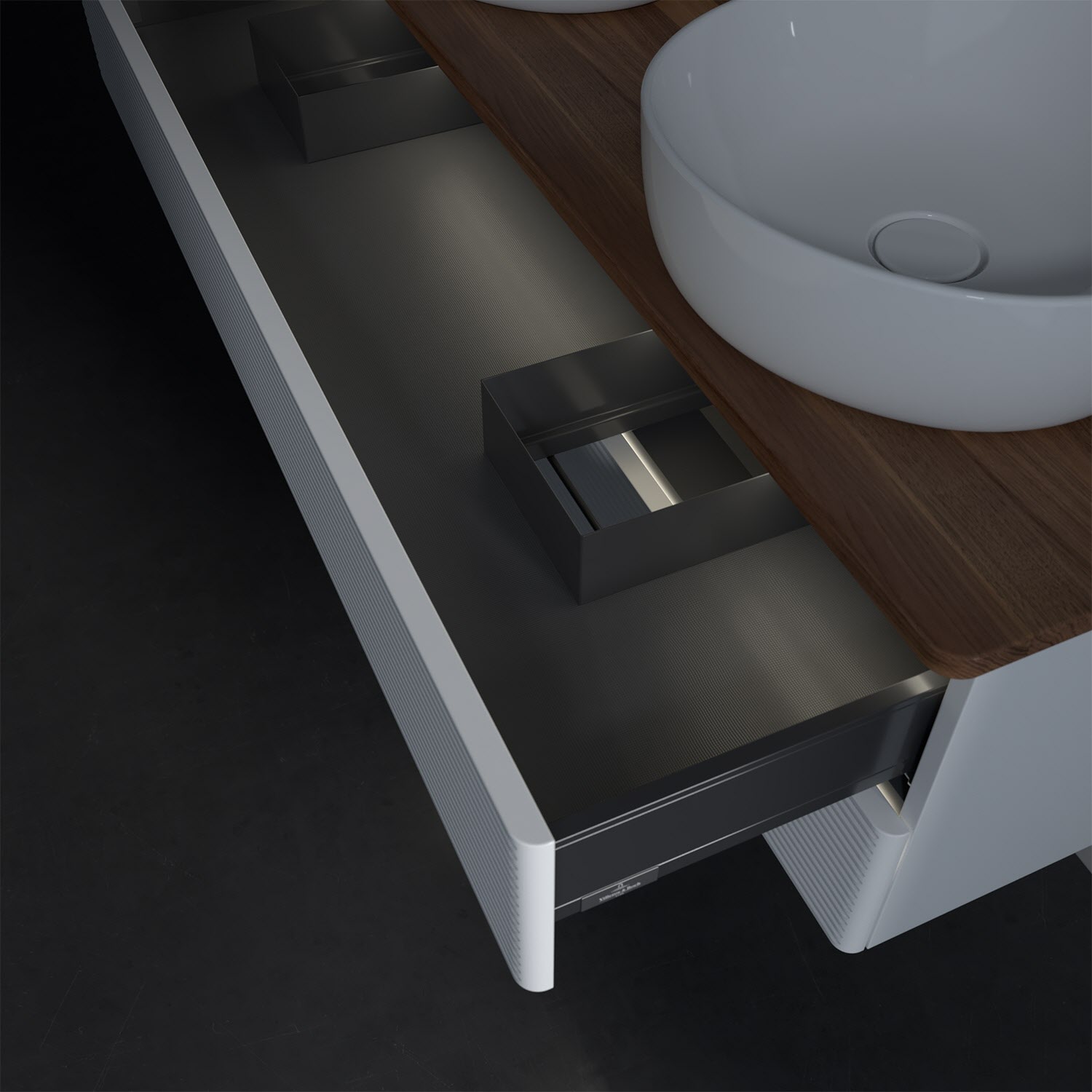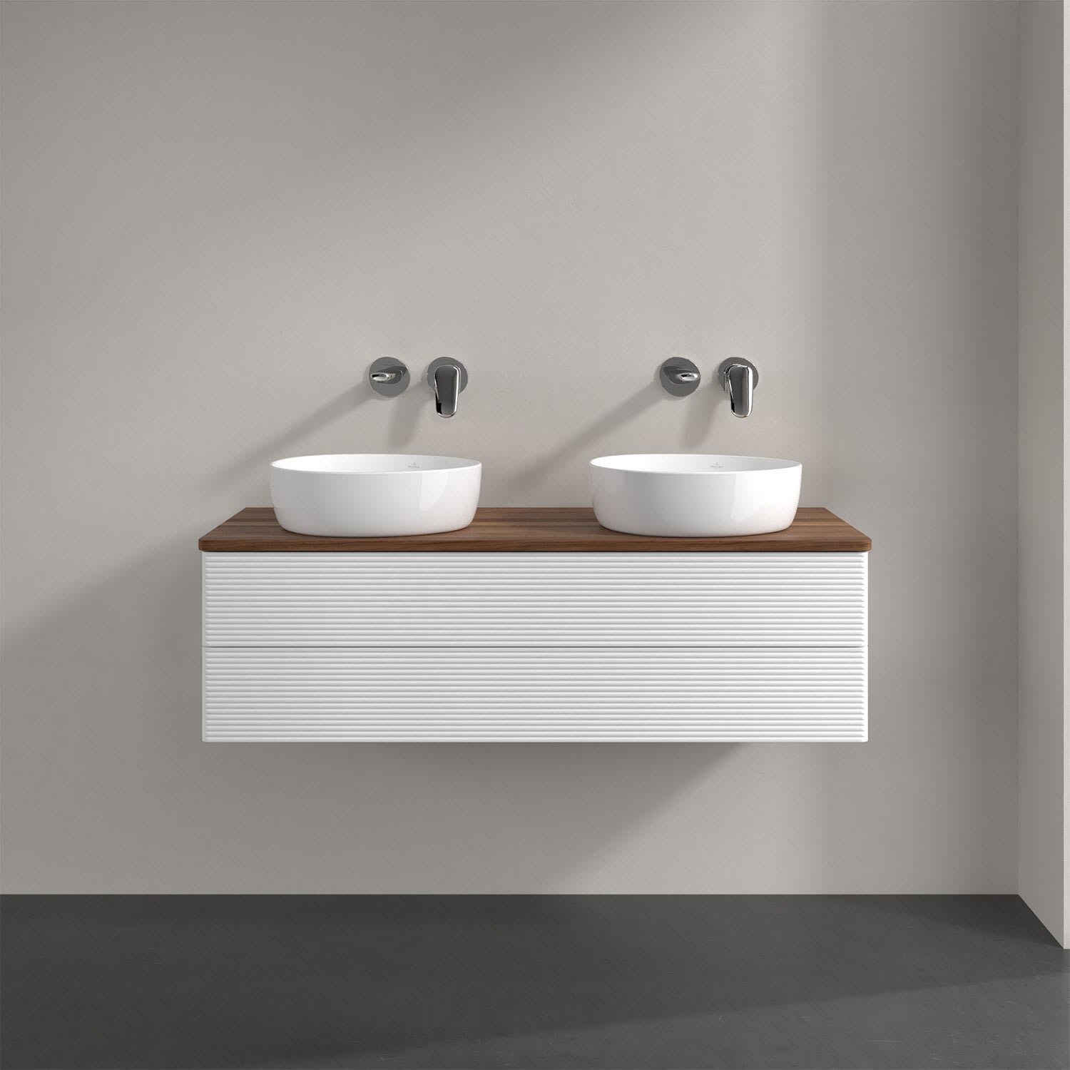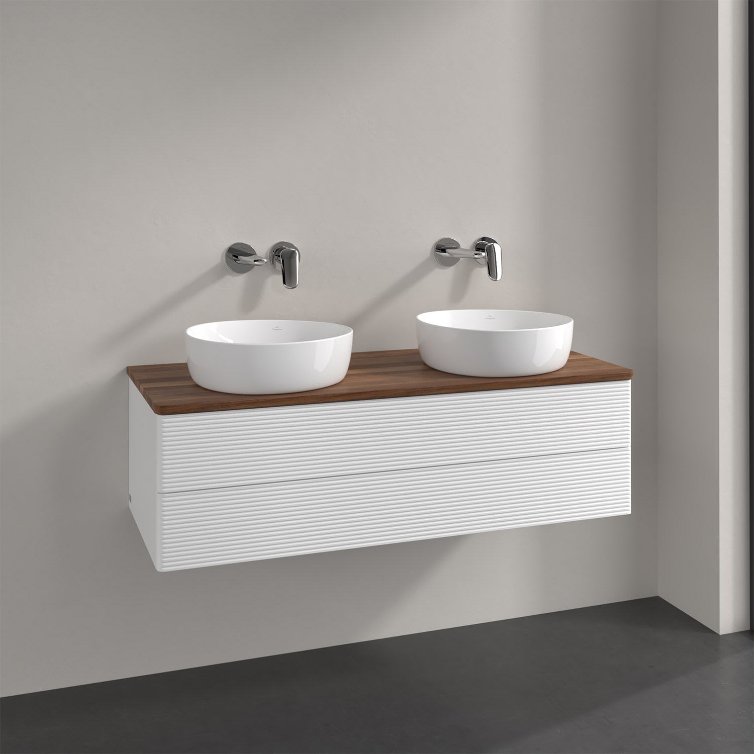 Der wandhängende Antao Waschtischunterschrank von Villeroy & Boch bietet nicht nur jede Menge Stauraum – er ist dank seines naturinspirierten Designs mit seinen abgerundeten Kanten auch noch besonders stilvoll und schafft eine gemütliche Atmosphäre im Badezimmer. Kombiniert mit zwei passenden Aufsatzwaschtischen also die ideale Wahl. Zwei geräumige Auszüge bieten viel Platz, um alles Notwendige zu verstauen und Ordnung zu halten. Öffnen lassen sie sich durch leichten Druck auf die strukturierte Front. Dabei aktiviert sich übrigens die Auszugsbeleuchtung in angenehmem Warmweiß. Dank Vollauszug hat man immer alles im Blick und der Antirutschboden verhindert ein Umfallen oder Verrutschen der Gegenstände. Einfach clever! Für eine besonders leichte Pflege sorgt die mehrschichtig deckend lackierte Oberfläche. Bei der Ausführung in Massivholz wird dank des verarbeiteten Massivholzes jedes Möbel zu einem Unikat, das sich durch das lebendige Naturmaterial durch seine einzigartige Struktur und Maserung auszeichnet.