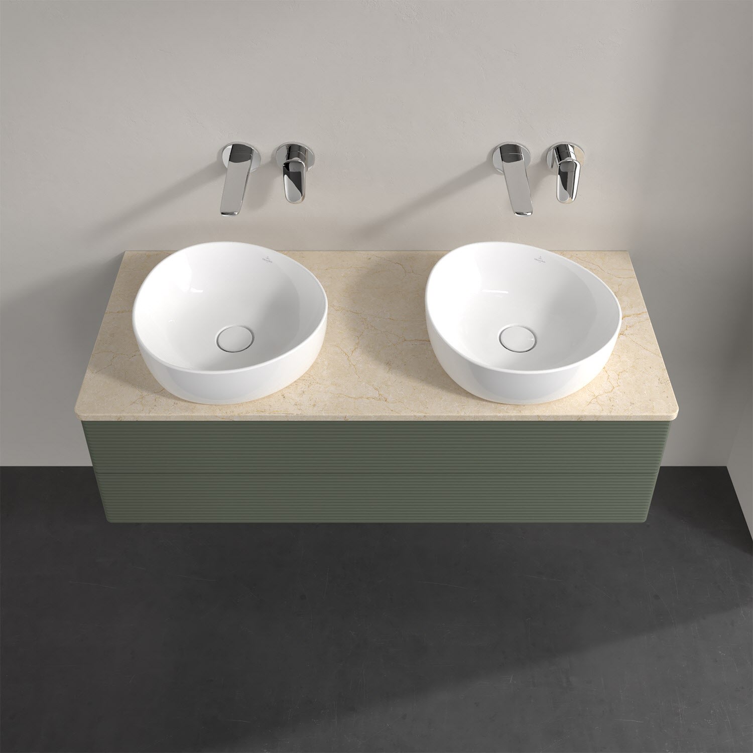 Für diesen Waschbeckenunterschrank stehen Ihnen Aufsatzwaschtische aus verschiedenen Serien zur Verfügung (siehe "Passliste" unter Downloads). Ein ausgewähltes Beispiel finden Sie im Zubehör. Den Waschtisch bitte separat mitbestellen.
