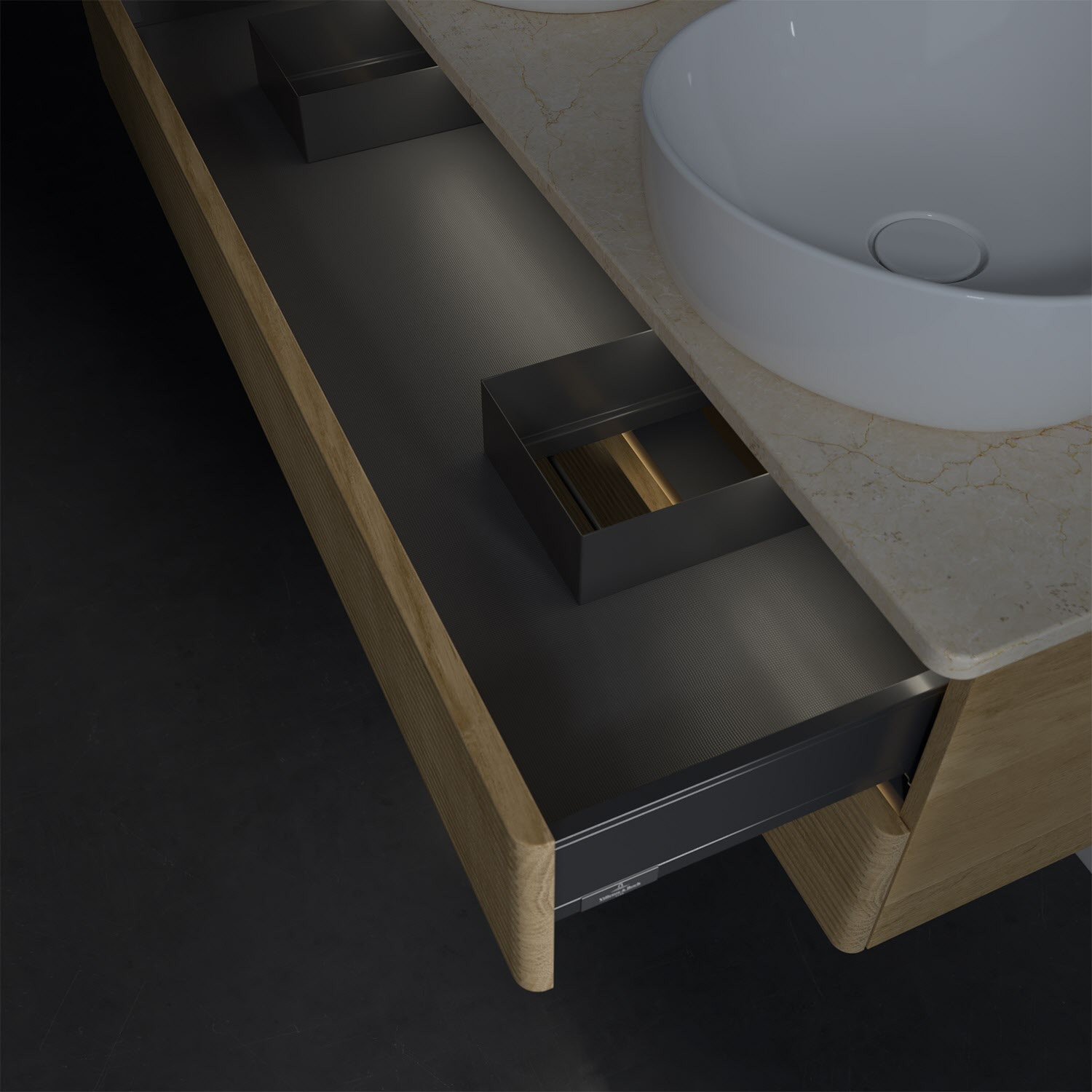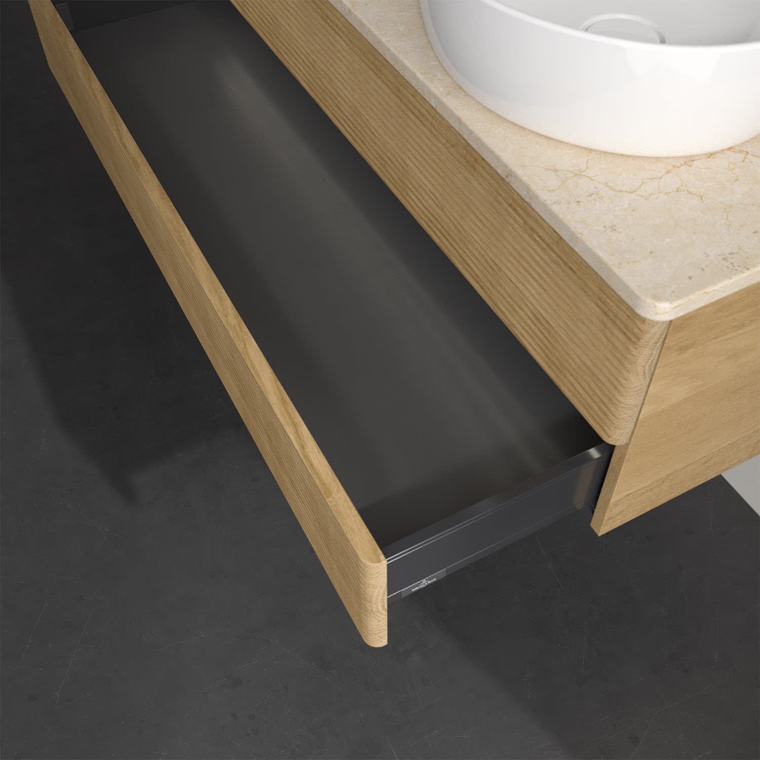- kein Umfallen oder Verrutschen von Pflegeprodukten in den Schubladen dank rutschhemmendem Boden