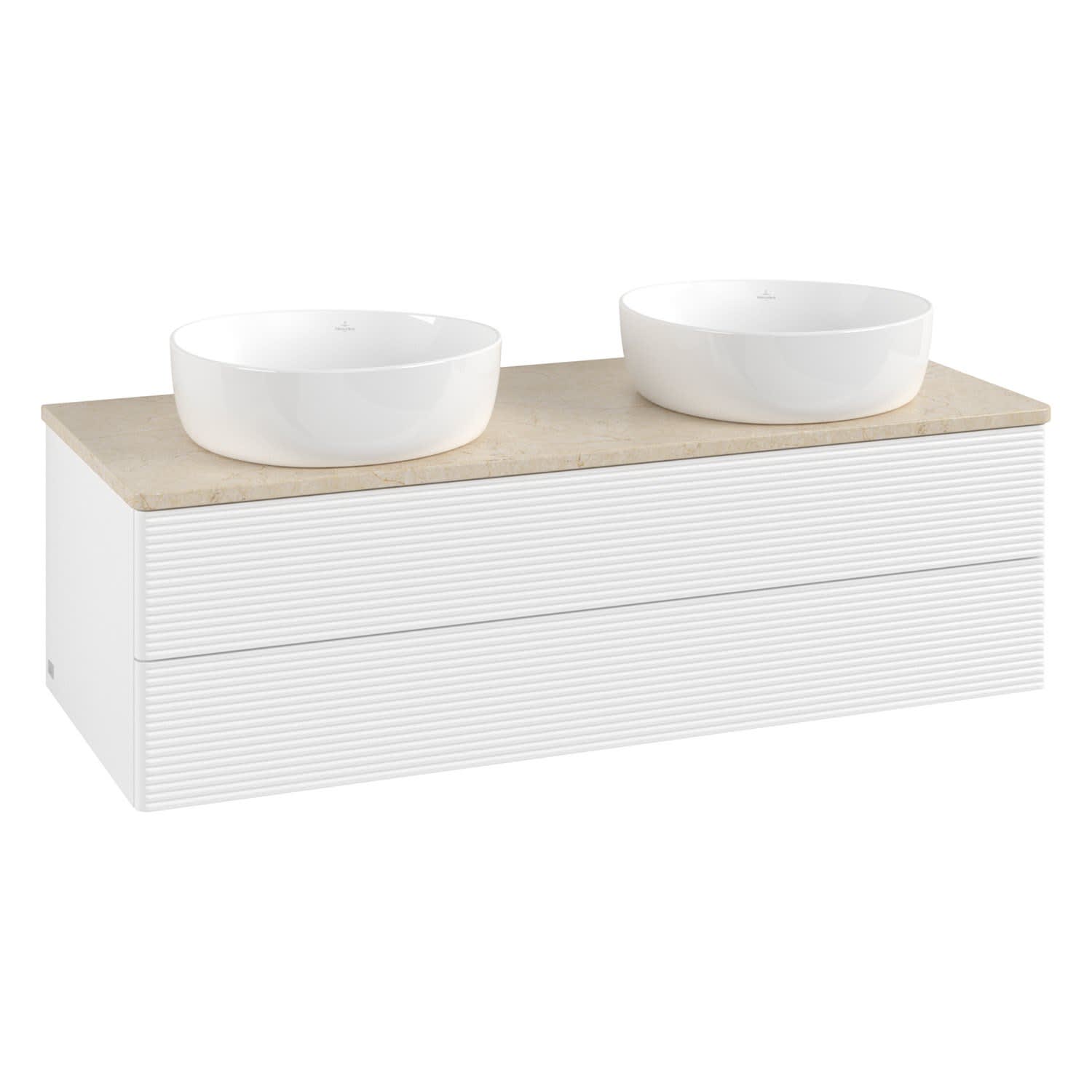 Villeroy & Boch Antao Waschbeckenunterschrank, 120 x 36 cm, 2 Auszüge mit LED-Licht, Front mit Struktur, ohne Hahnloch, für Waschtisch links und recht