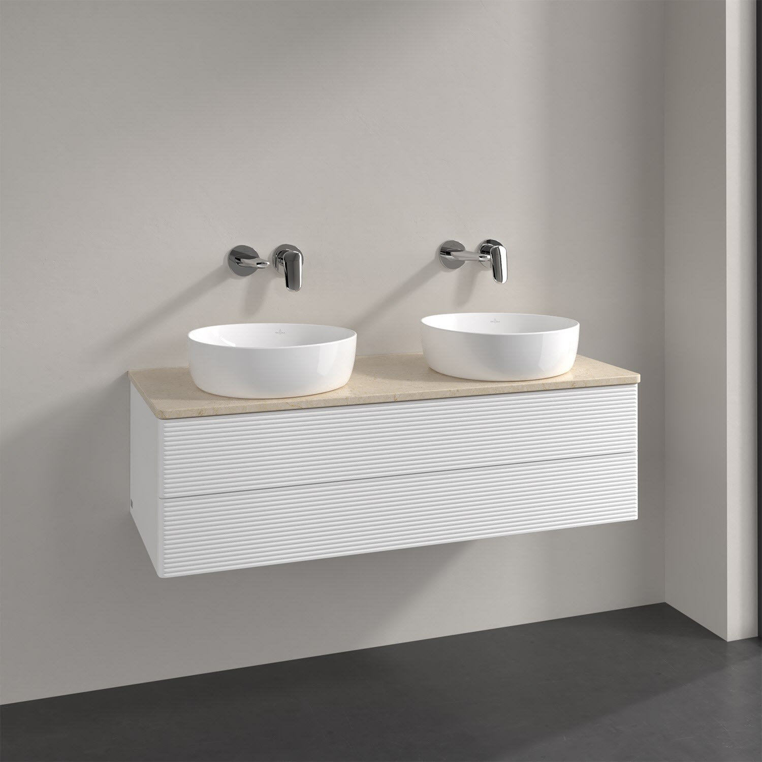 Der wandhängende Antao Waschtischunterschrank von Villeroy & Boch bietet nicht nur jede Menge Stauraum – er ist dank seines naturinspirierten Designs mit seinen abgerundeten Kanten auch noch besonders stilvoll und schafft eine gemütliche Atmosphäre im Badezimmer. Kombiniert mit zwei passenden Aufsatzwaschtischen also die ideale Wahl. Zwei geräumige Auszüge bieten viel Platz, um alles Notwendige zu verstauen und Ordnung zu halten. Öffnen lassen sie sich durch leichten Druck auf die strukturierte Front. Dabei aktiviert sich übrigens die Auszugsbeleuchtung in angenehmem Warmweiß. Dank Vollauszug hat man immer alles im Blick und der Antirutschboden verhindert ein Umfallen oder Verrutschen der Gegenstände. Einfach clever! Für eine besonders leichte Pflege sorgt die mehrschichtig deckend lackierte Oberfläche. Bei der Ausführung in Massivholz wird dank des verarbeiteten Massivholzes jedes Möbel zu einem Unikat, das sich durch das lebendige Naturmaterial durch seine einzigartige Struktur und Maserung auszeichnet.