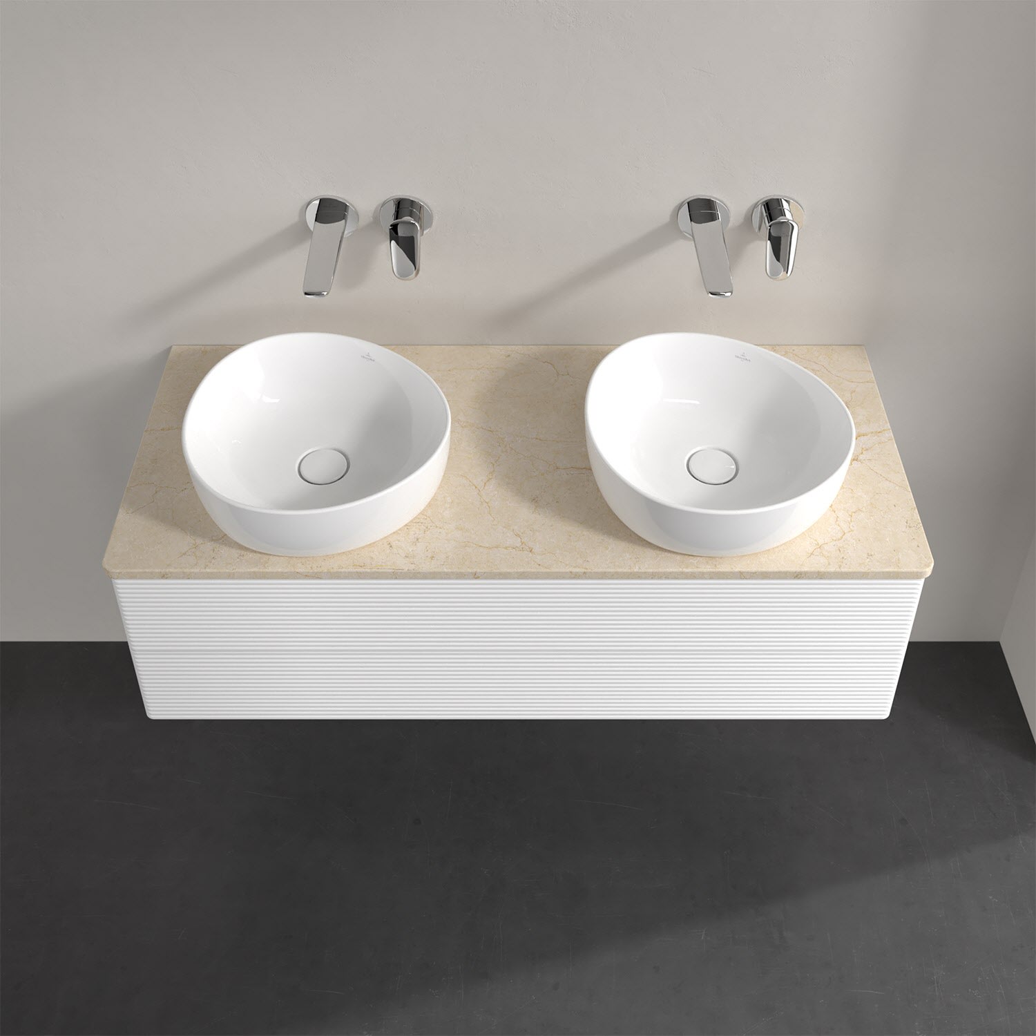 Für diesen Waschbeckenunterschrank stehen Ihnen Aufsatzwaschtische aus verschiedenen Serien zur Verfügung (siehe "Passliste" unter Downloads). Ein ausgewähltes Beispiel finden Sie im Zubehör. Den Waschtisch bitte separat mitbestellen.