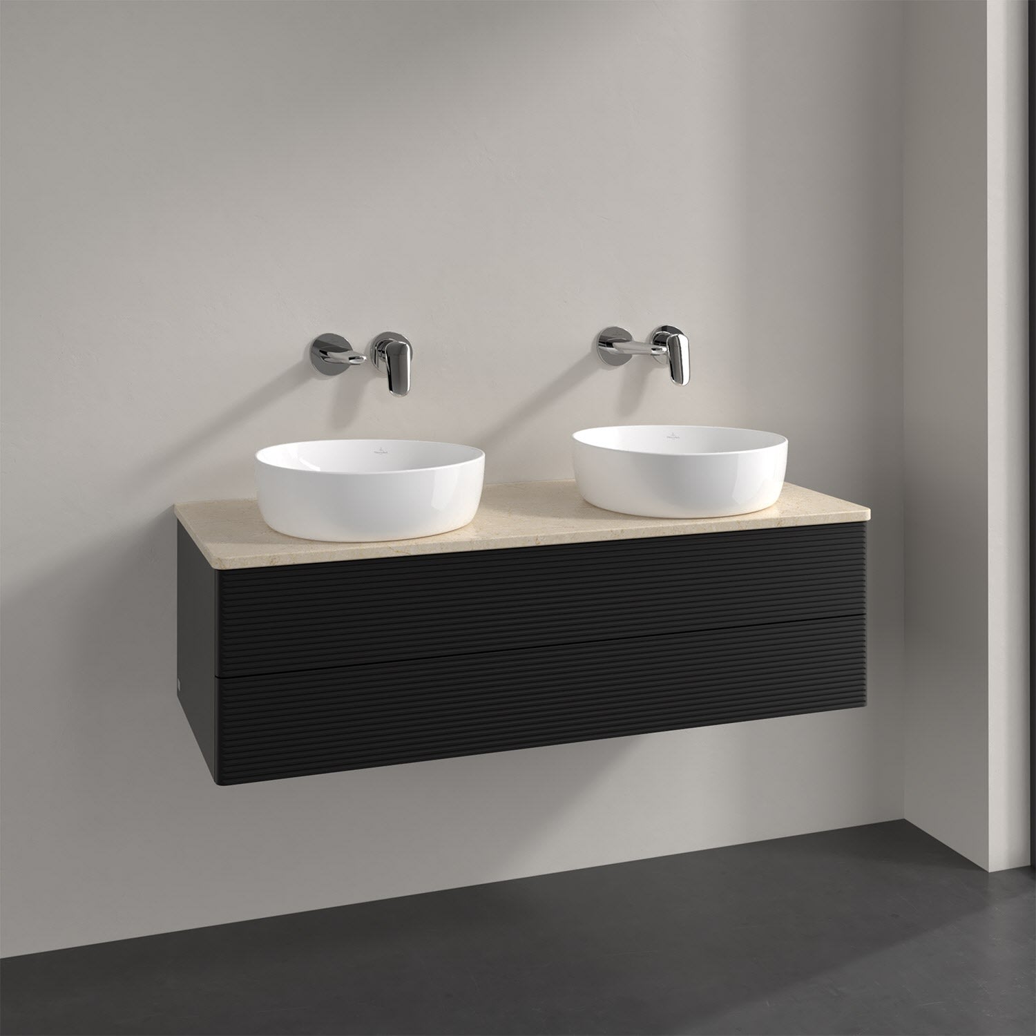 Villeroy & Boch Antao Waschbeckenunterschrank, 120 x 36 cm, 2 Auszüge mit LED-Licht, Front mit Struktur, ohne Hahnloch, für Waschtisch links und recht